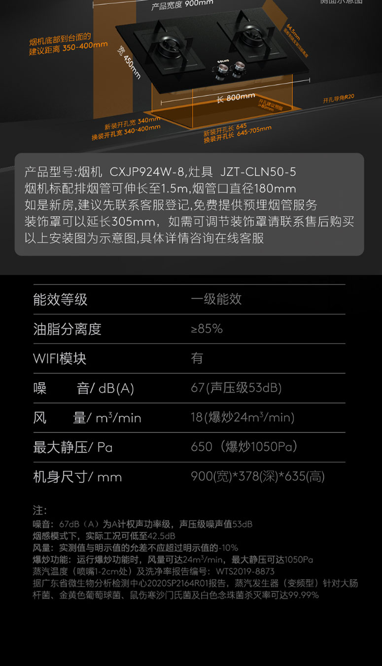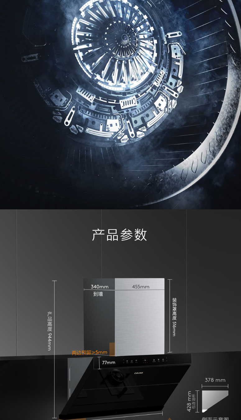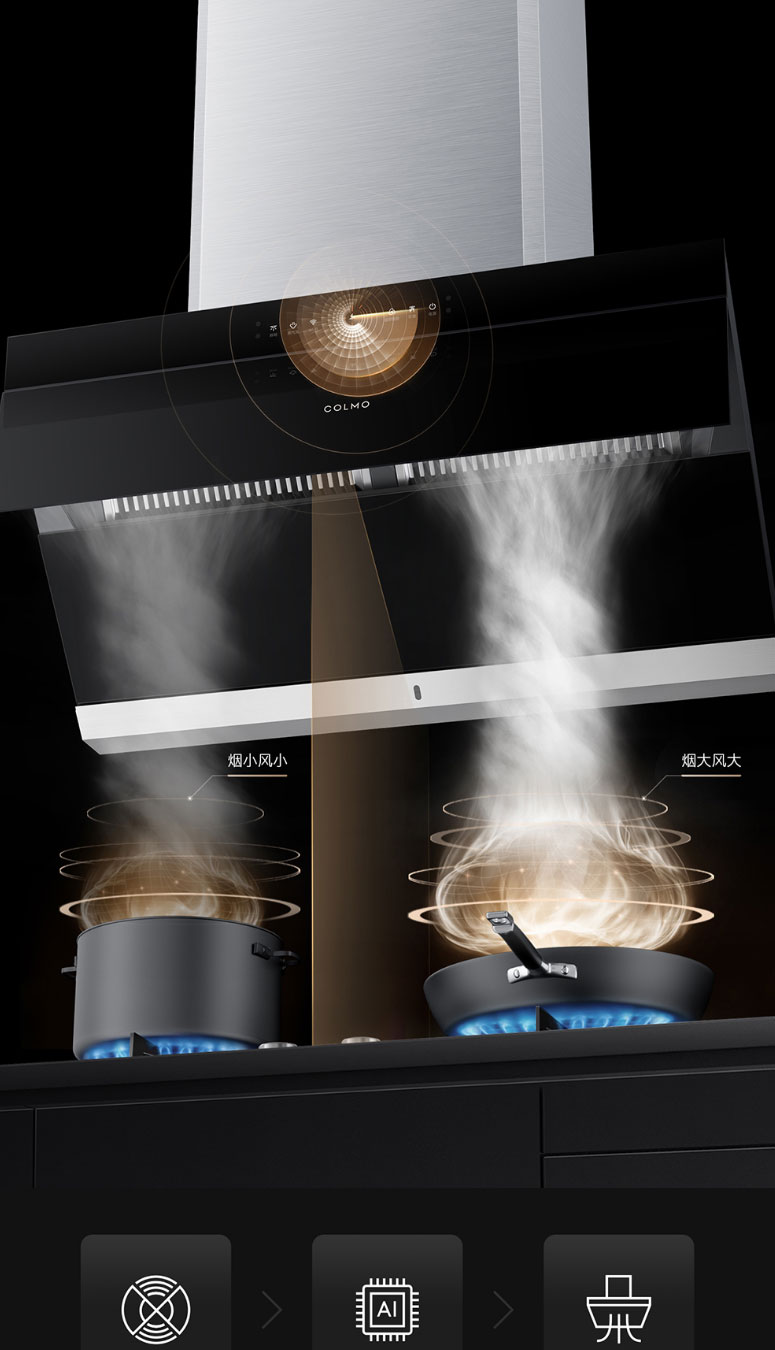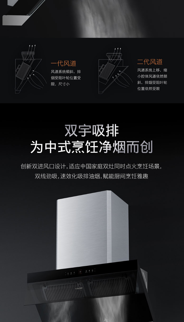 COLMO油烟机 24³m爆炒大吸力 侧吸式家用抽吸油烟机 雷达捕烟 灭菌蒸汽洗挥手触控变频烟机CXJP924W-8