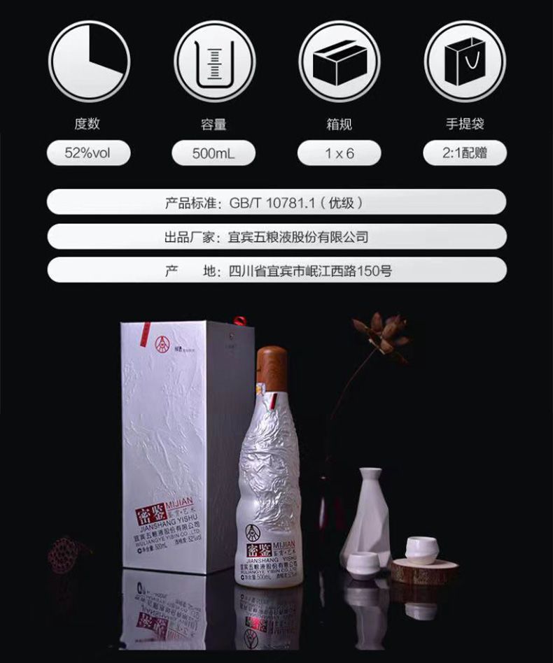 五粮液银密鉴 52度浓香型白酒 整箱500ml*6瓶包邮