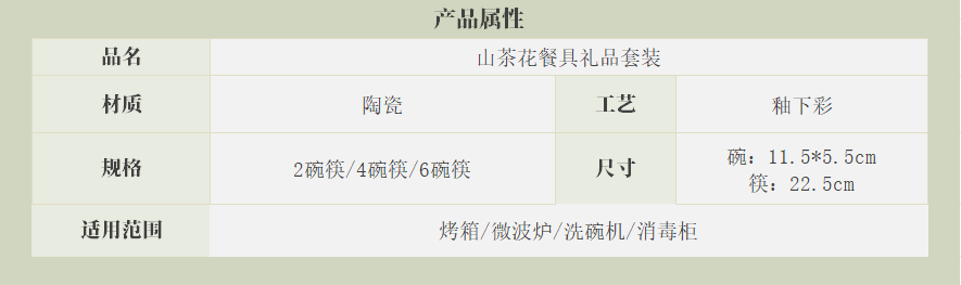 这套山茶花餐具采用的就是釉下彩高温烧制工艺,支持微波炉、烤箱、洗碗机使用,全家都可以放心用!