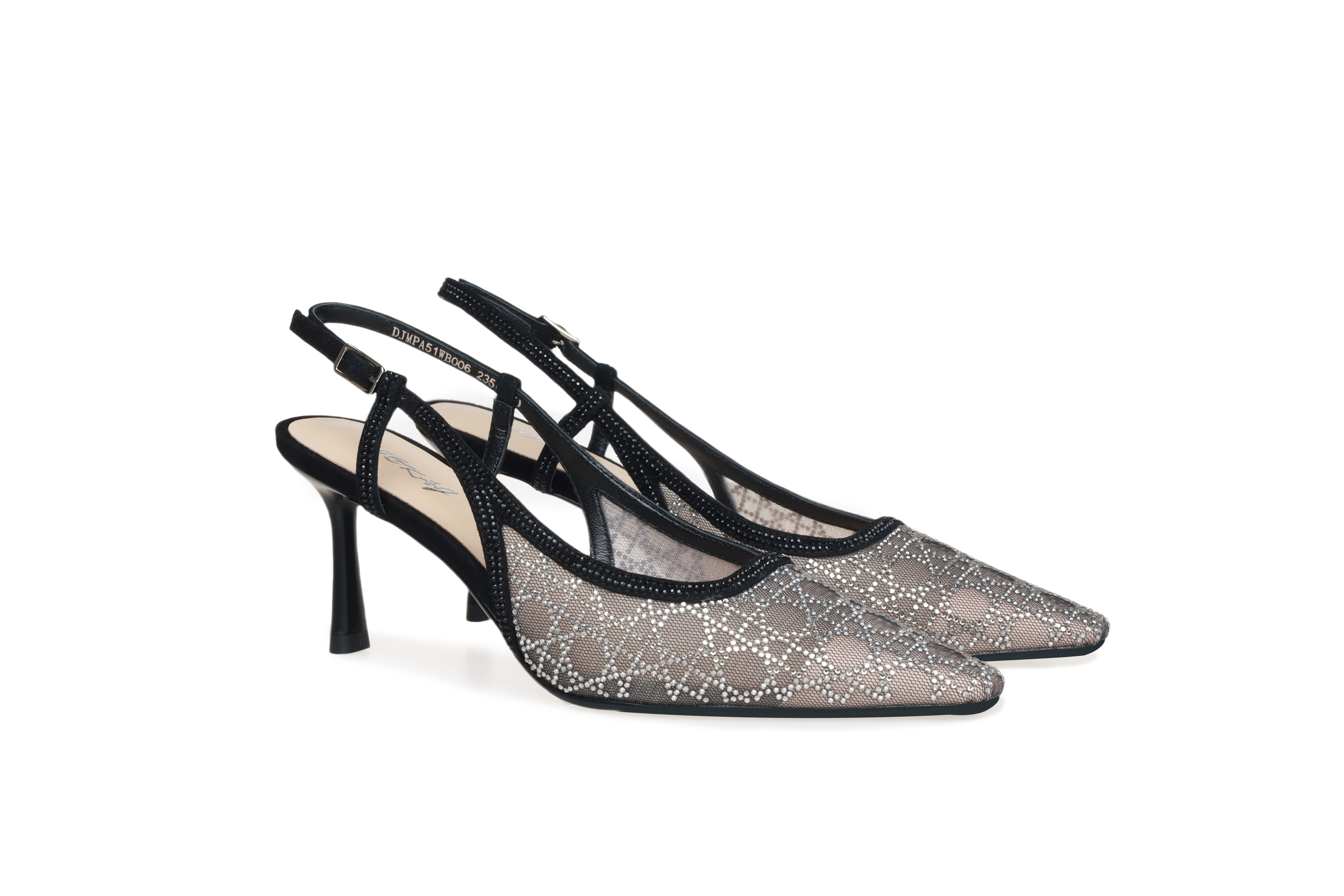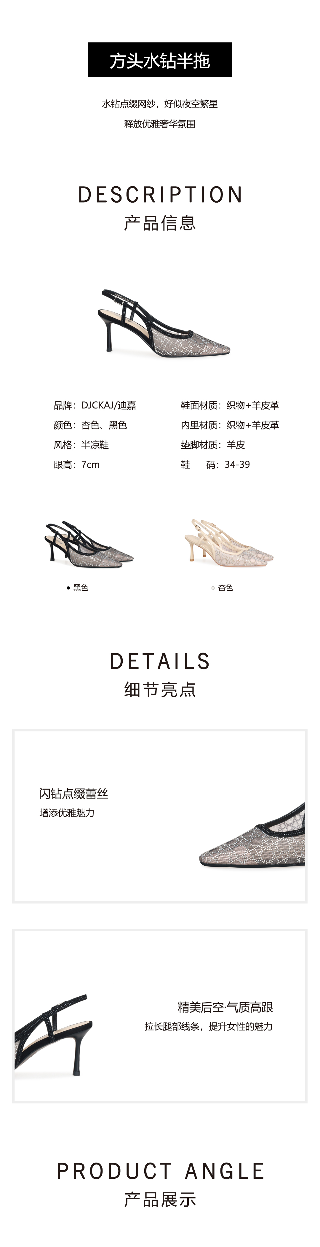 豪麟名鞋奥莱迪嘉女鞋半凉鞋织物+羊皮革DJMPA51WB006黑色 原价2660元