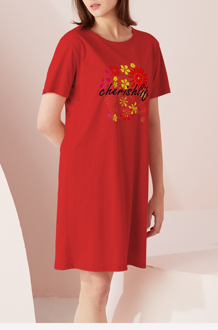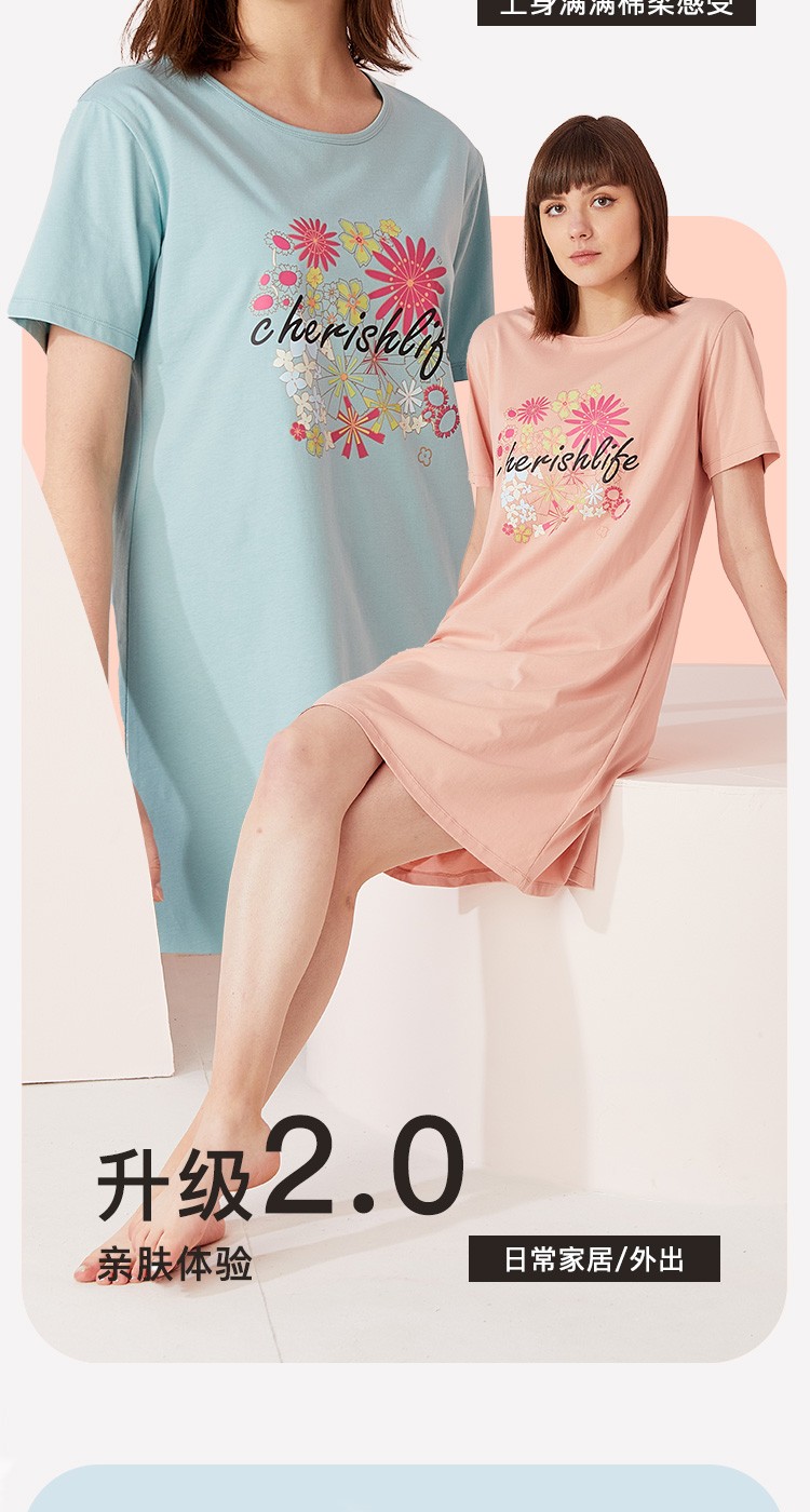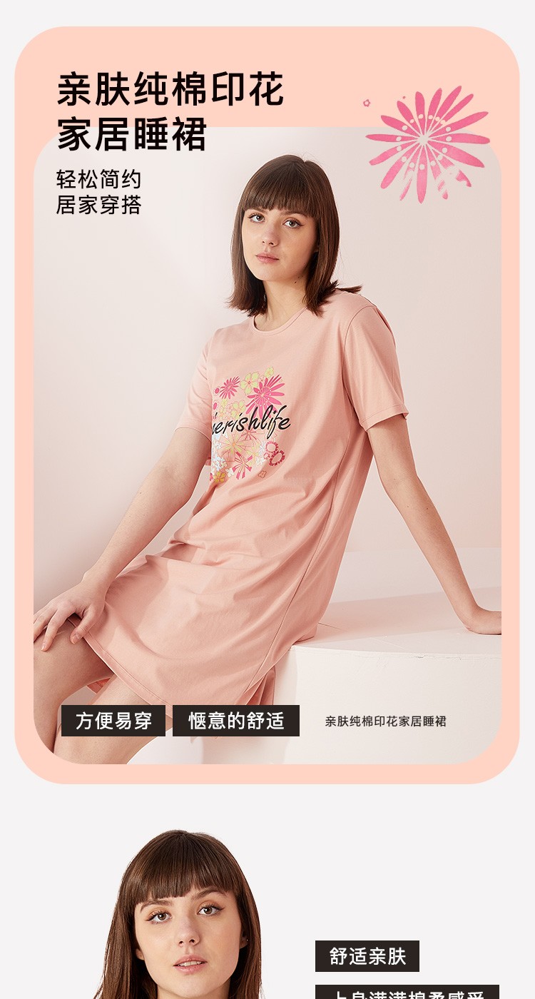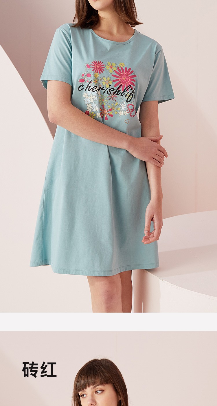 小护士亲肤棉圆领印花短袖裙-女JMQ032