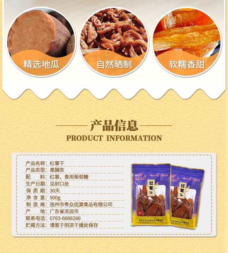 【粤众佳源】手工红薯干500g