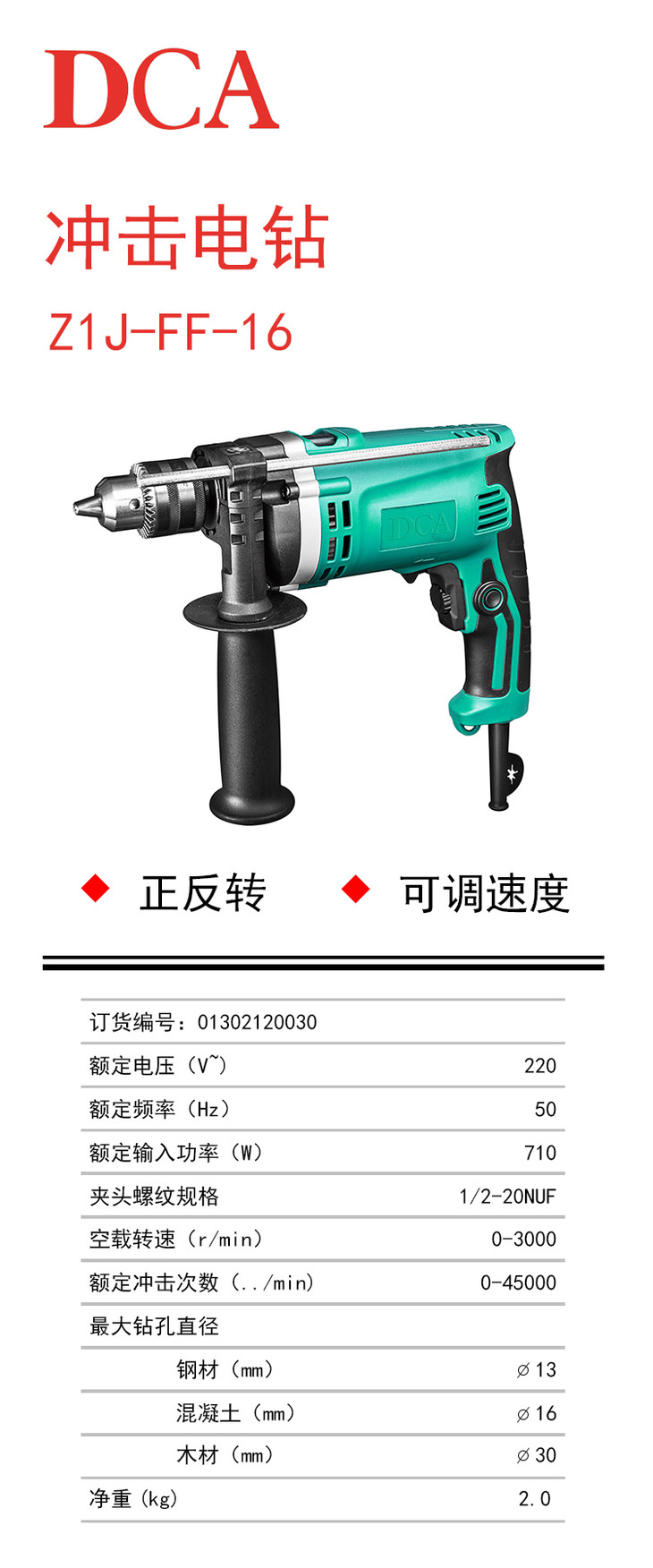 东成(DCA)冲击电钻 Z1J-FF-16 710W