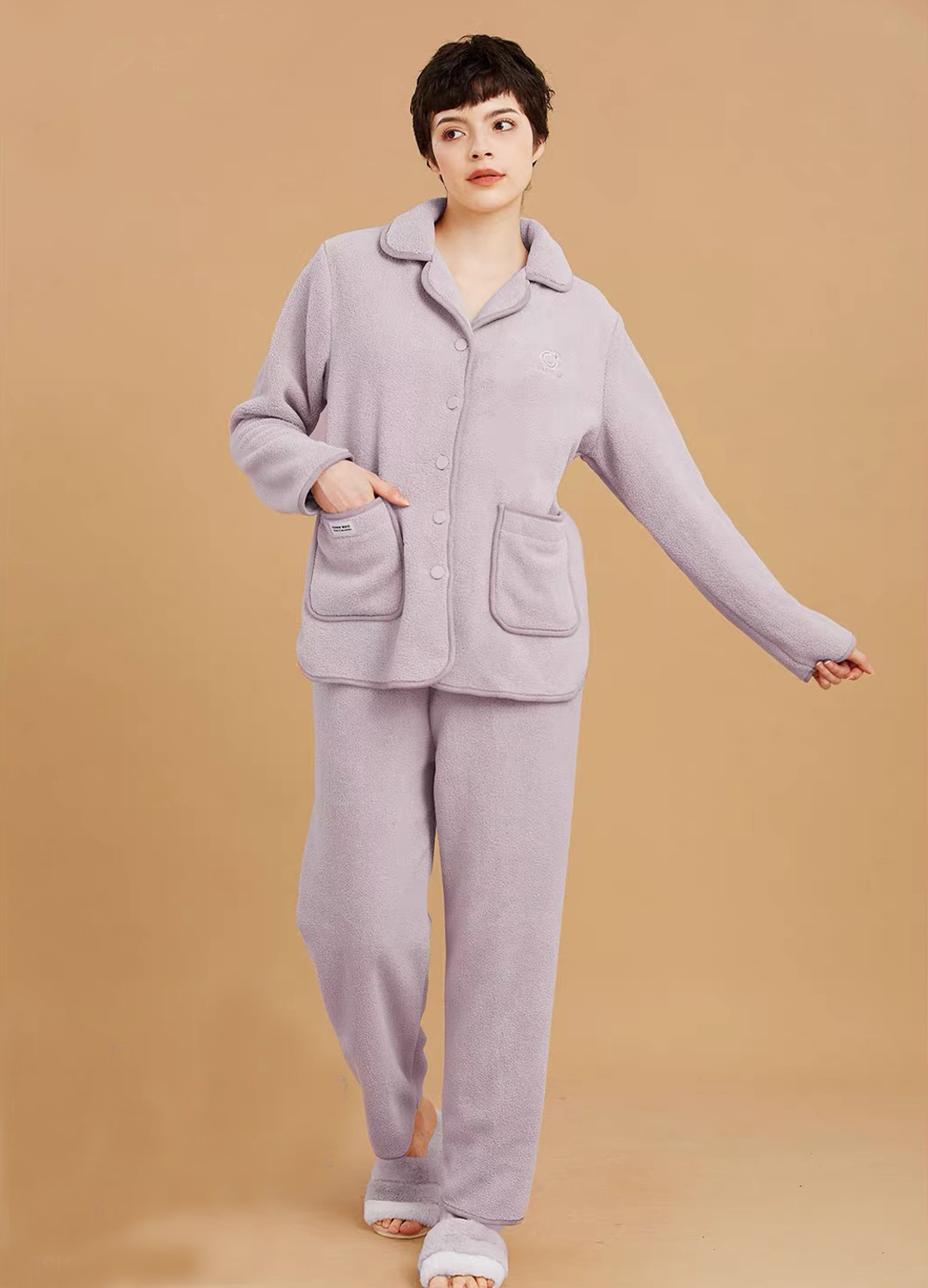 女士翻领休闲睡衣套装果粒绒保暖可外穿家居服套装【24R41359】