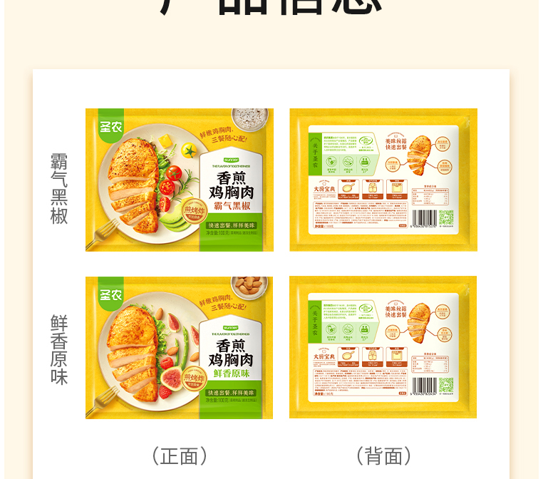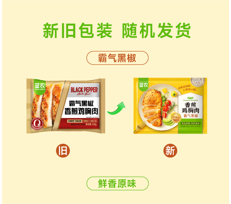 【125任选5样】圣农霸气黑椒地道藤椒香煎鸡胸肉100g*5包,单拍不包邮