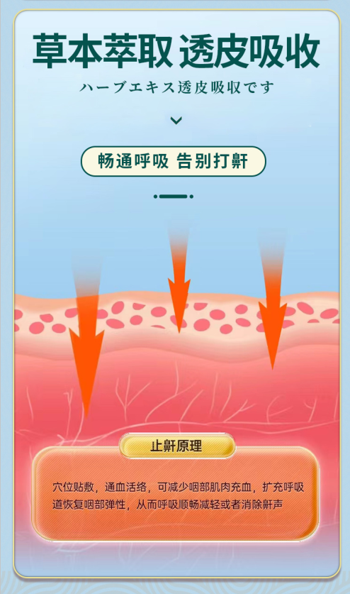 草本止鼾贴通过对天突穴物理外敷疗法,