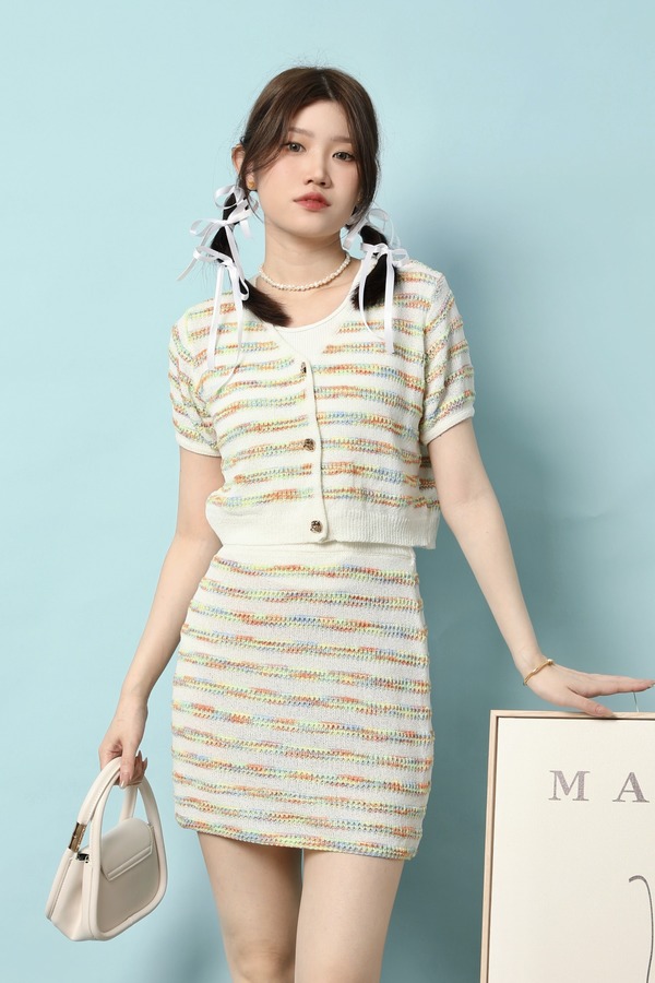 L.Fleuri 多彩条纹针织开衫半裙套装 18028