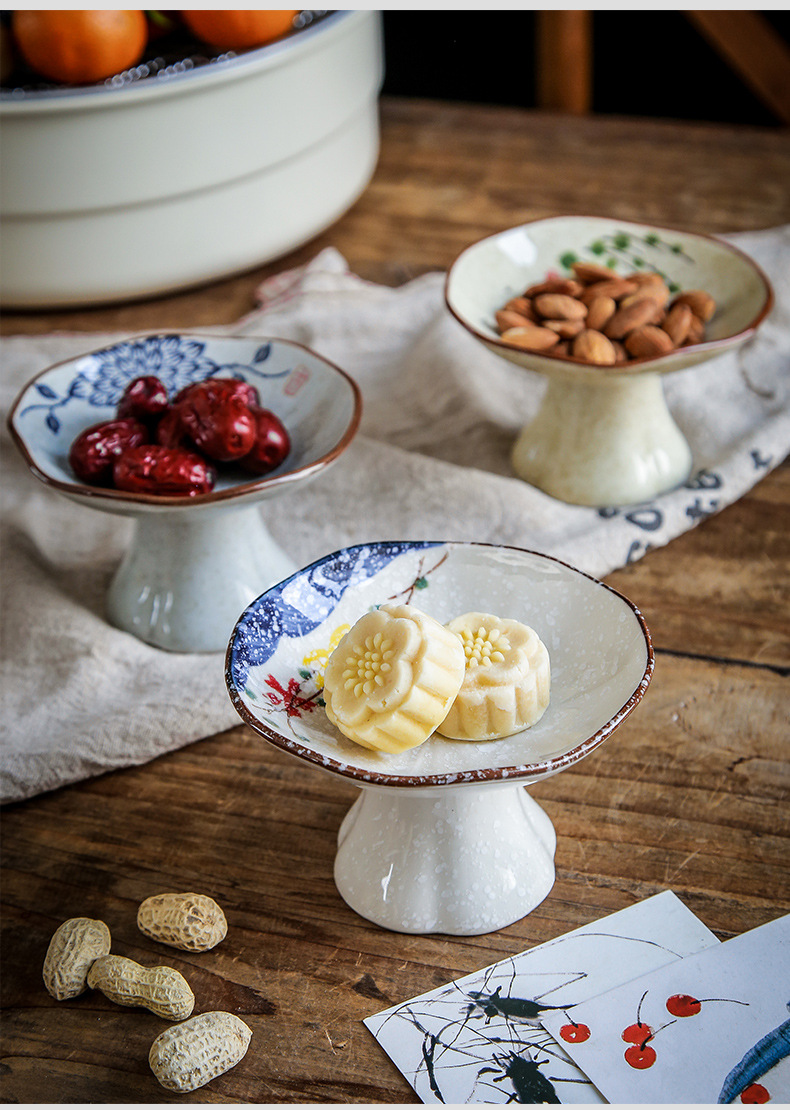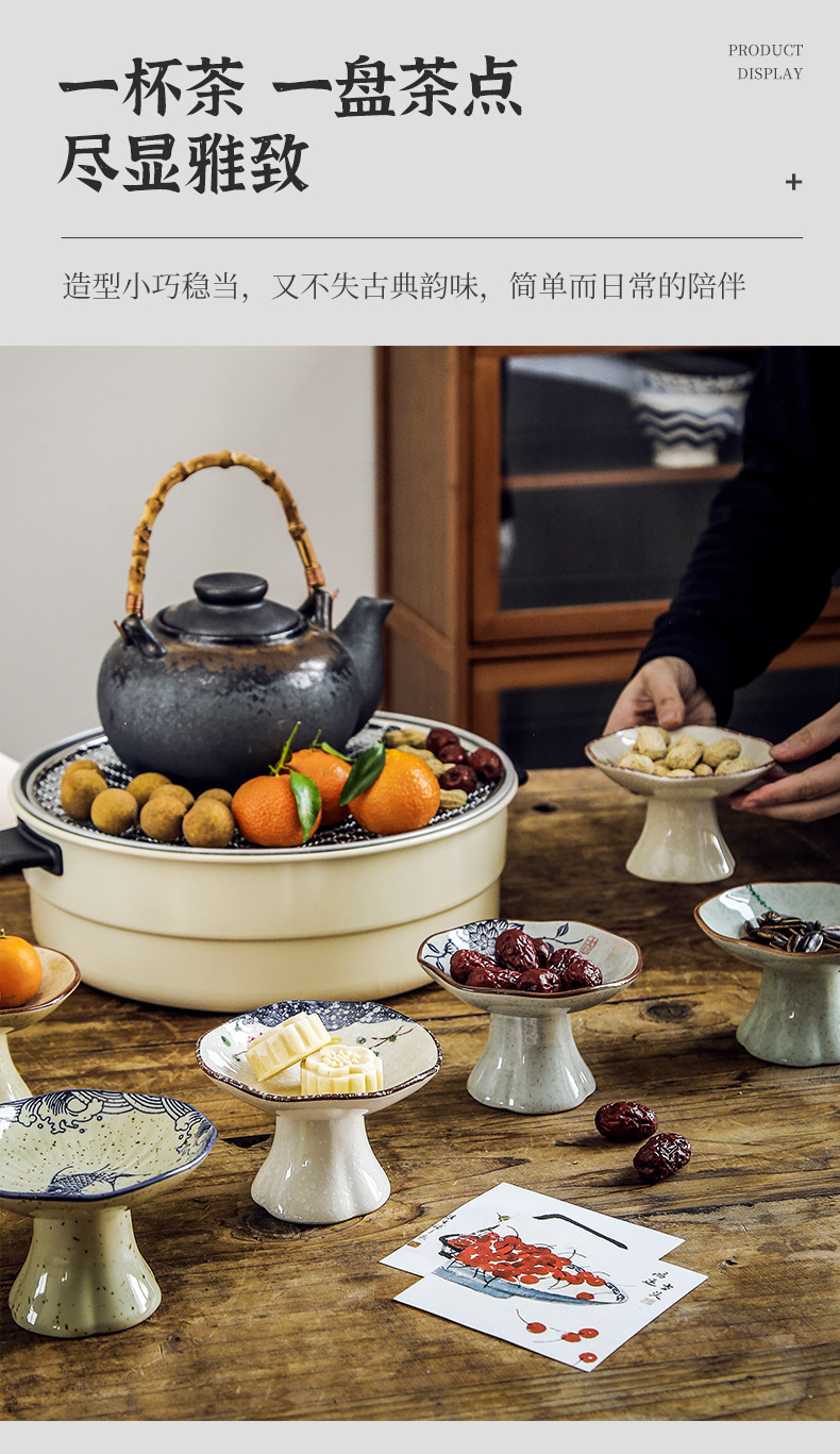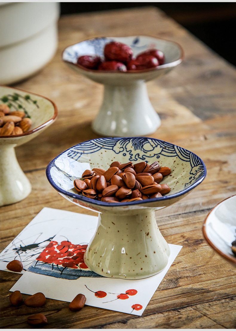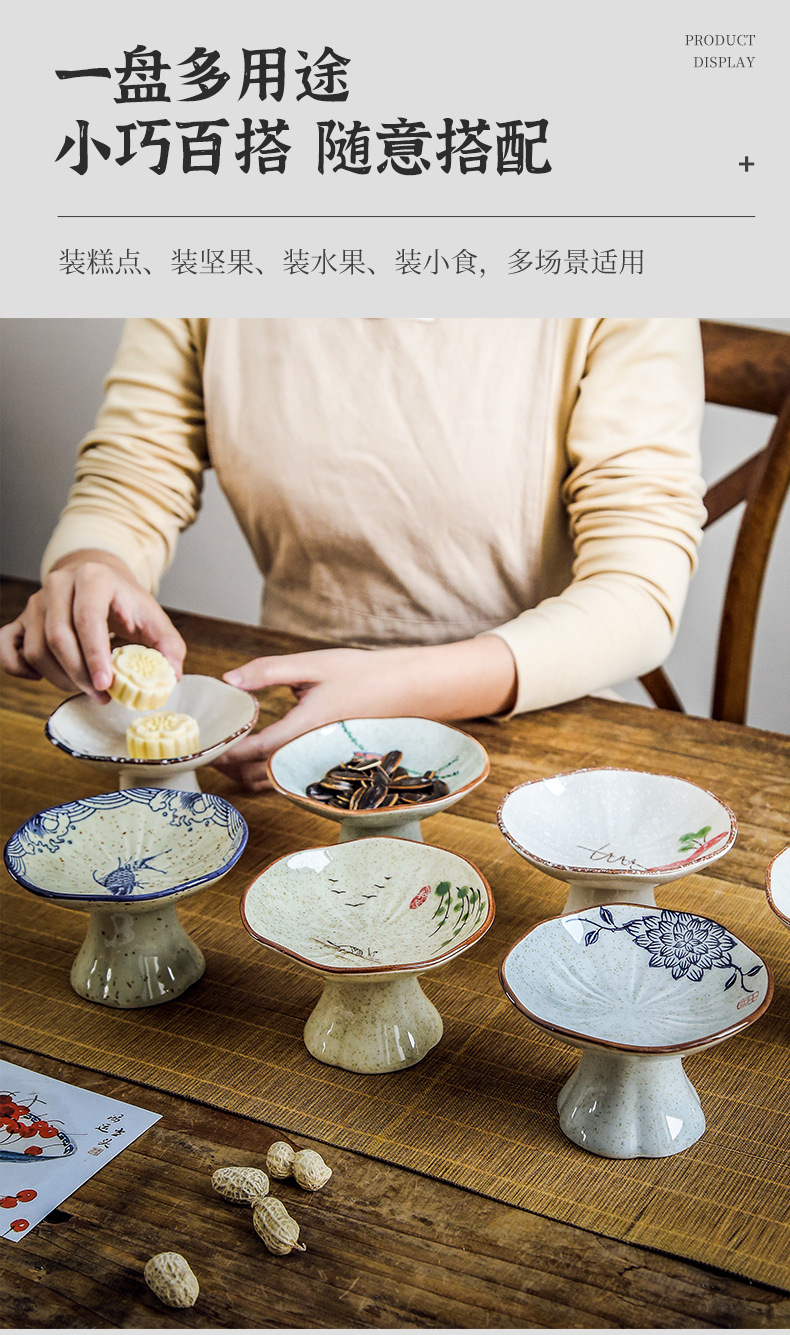 【出口陶瓷高脚盘】创意中式高脚果盘高颜值家用茶点盘糕点盘复古陶瓷点心盘水果盘子