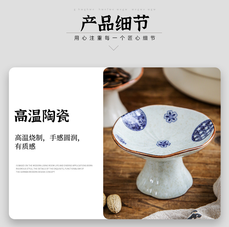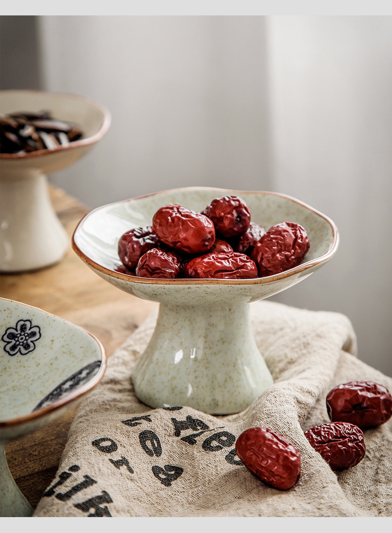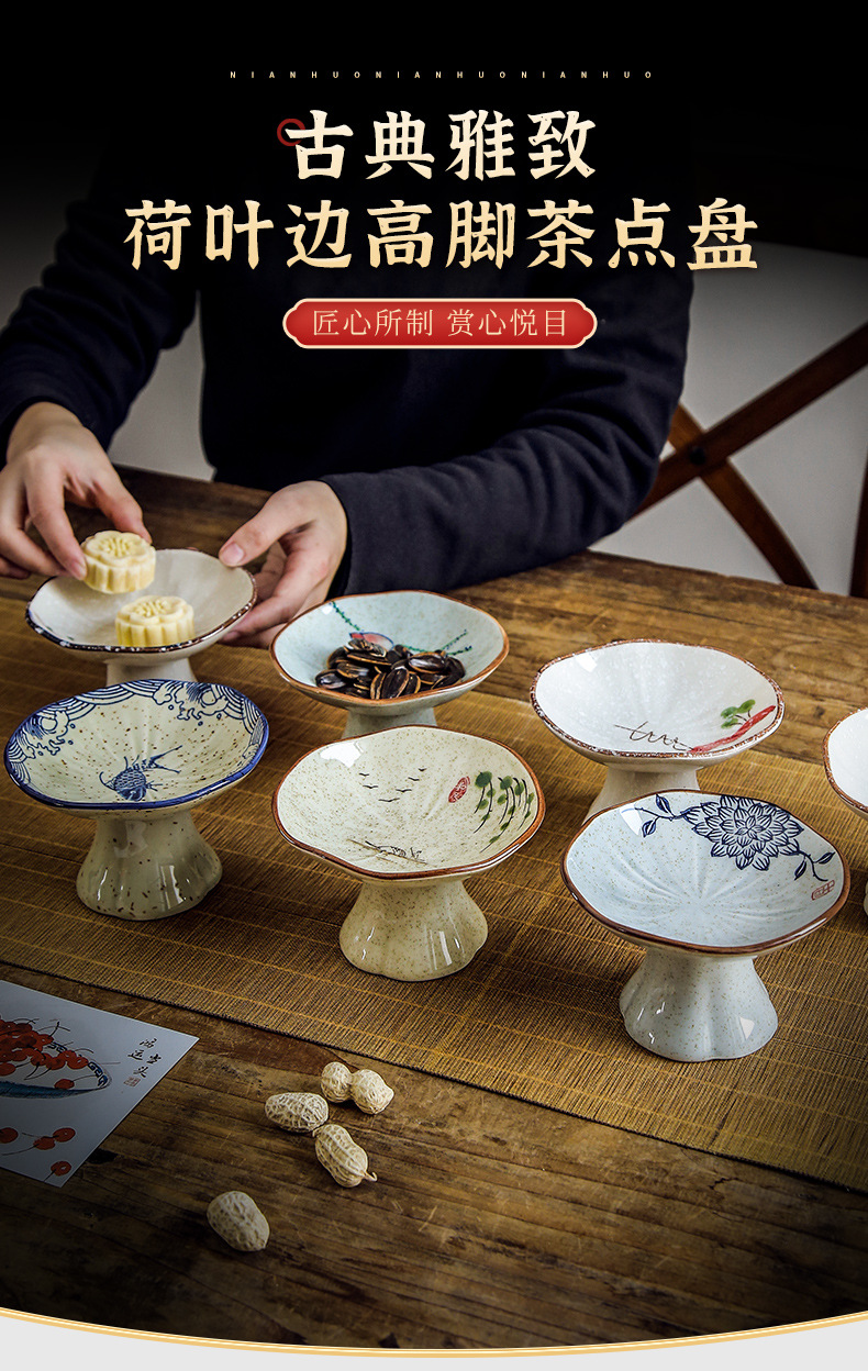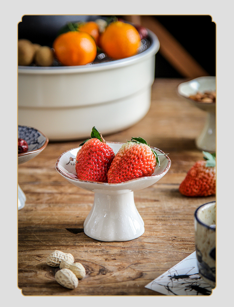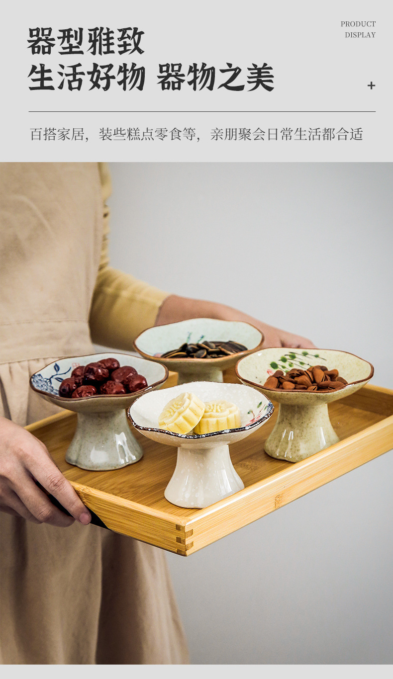 【出口陶瓷高脚盘】创意中式高脚果盘高颜值家用茶点盘糕点盘复古陶瓷点心盘水果盘子
