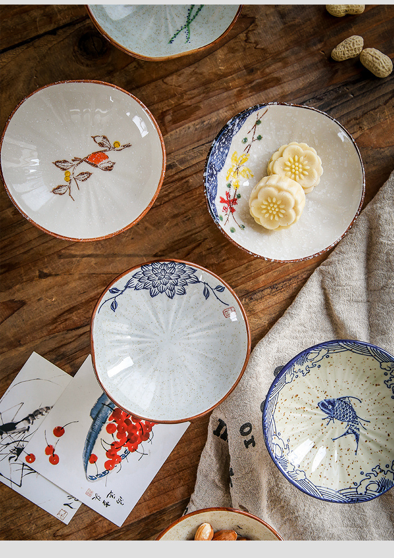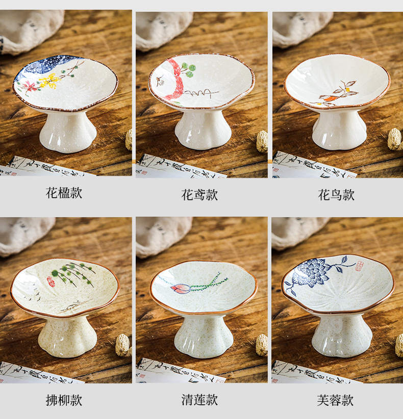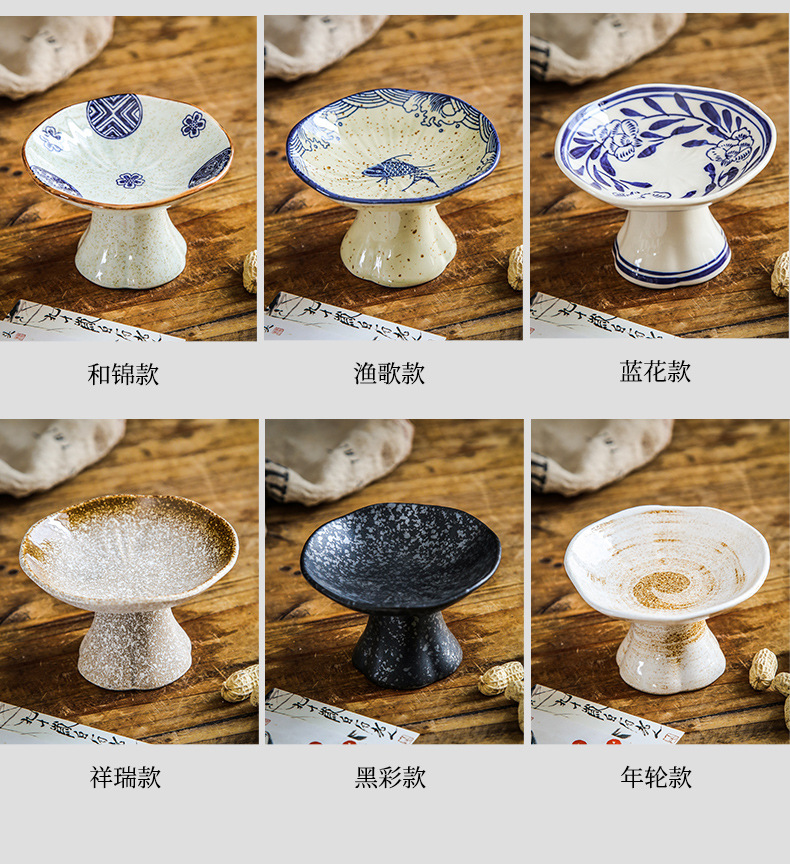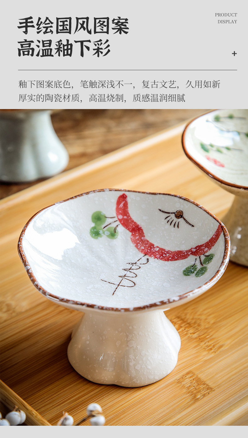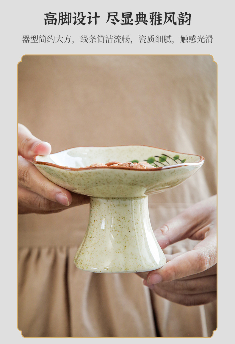 【出口陶瓷高脚盘】创意中式高脚果盘高颜值家用茶点盘糕点盘复古陶瓷点心盘水果盘子
