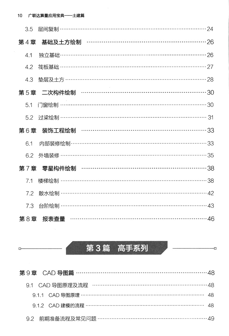 本书内容全面,除了详细讲解土建计量计算原理、绘图识别技巧方法外,还设置了复杂专题构件讲解及快捷键的应用,让造价员掌握算量的方法和技巧,快速上手做工程。 本书结构清晰,内容由浅入深,从初步了解到用精软件,能够让使用软件的每个阶段的读者都有所收获。