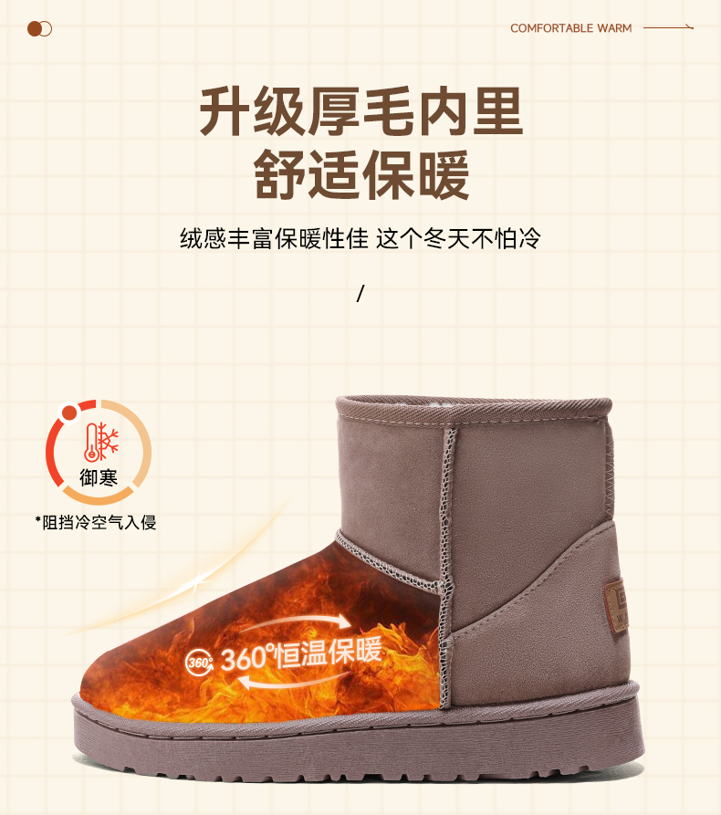回力雪地靴女款新款冬季加绒加厚面包鞋子女短靴东北保暖棉鞋2146