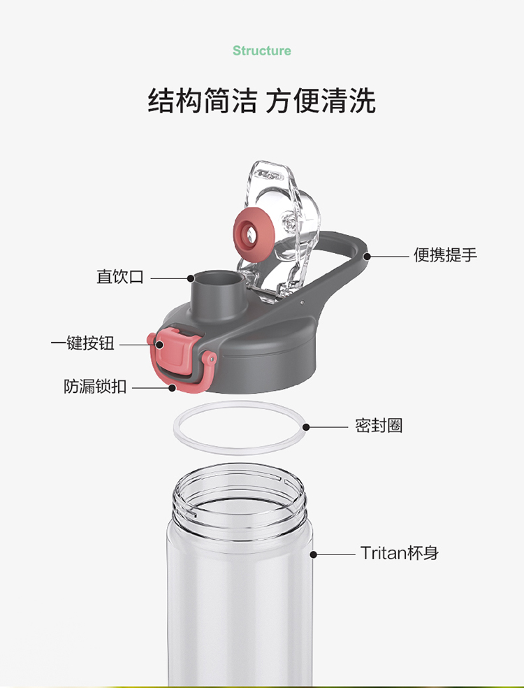 乐扣乐扣运动水杯Tritan大容量塑料水壶户外健身夏季杯子女学生男 ABF786组合