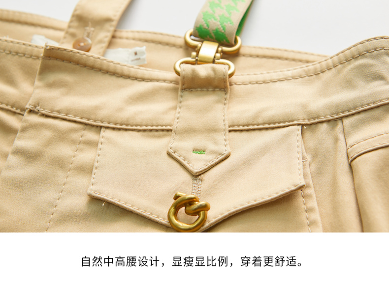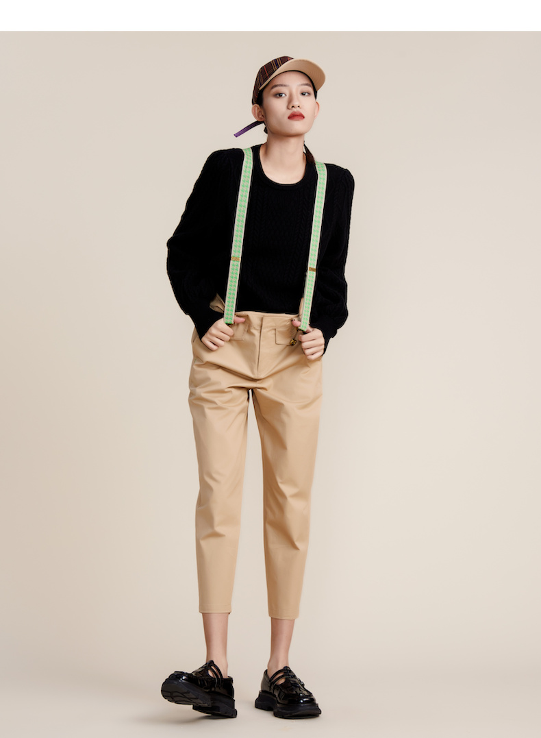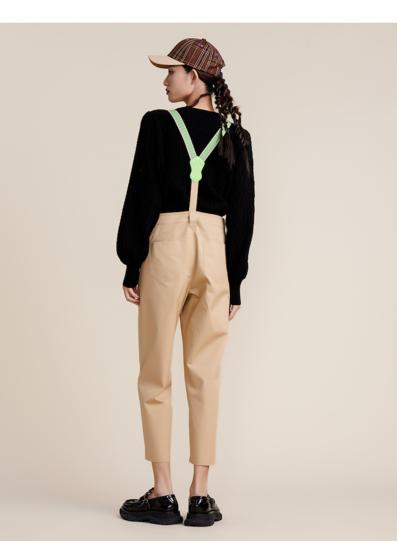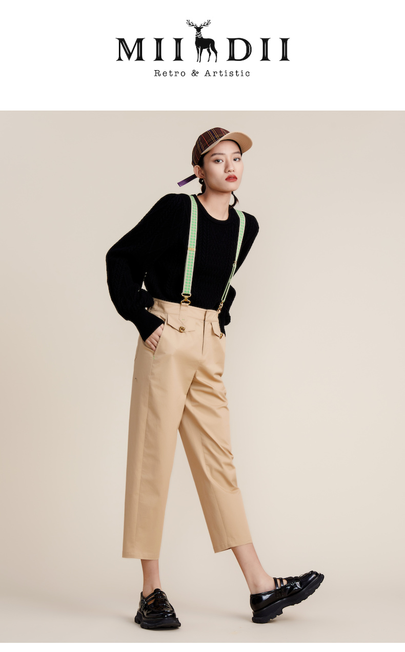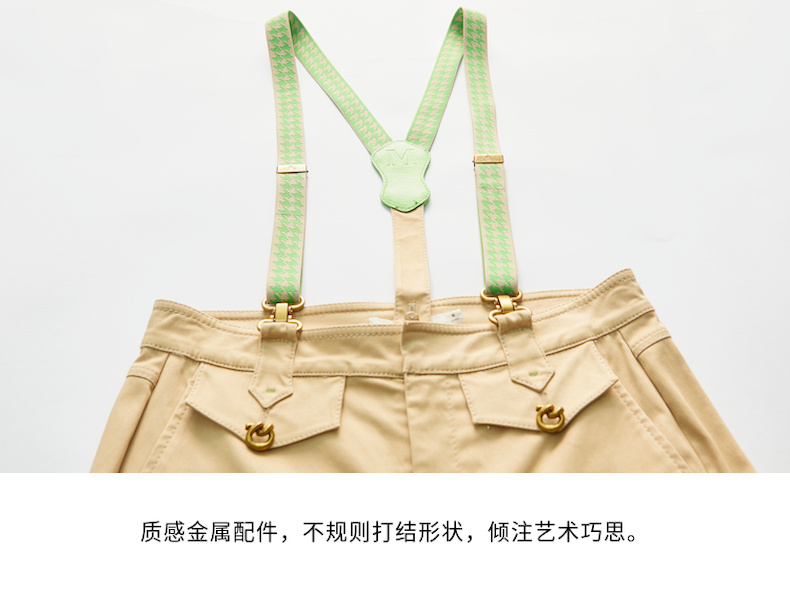 MIIDII谜底2022春新款简约帅气千鸟格织带背带裤长裤女221MK0002