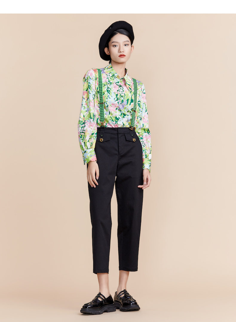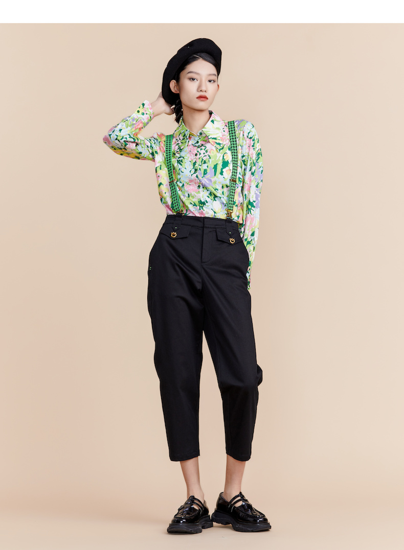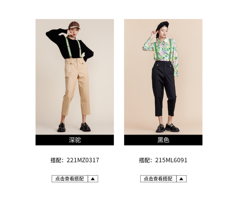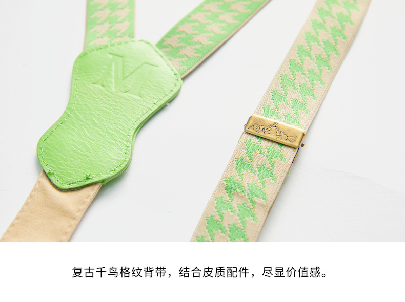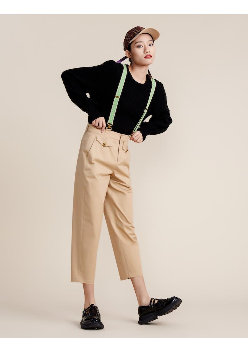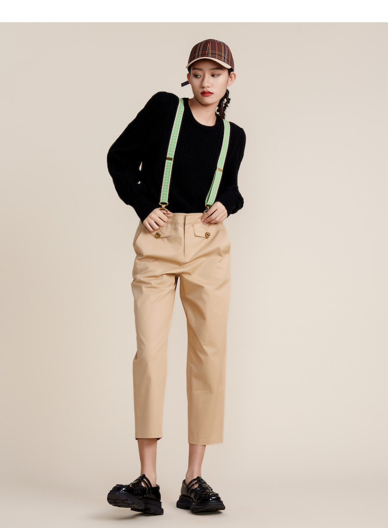 MIIDII谜底2022春新款简约帅气千鸟格织带背带裤长裤女221MK0002