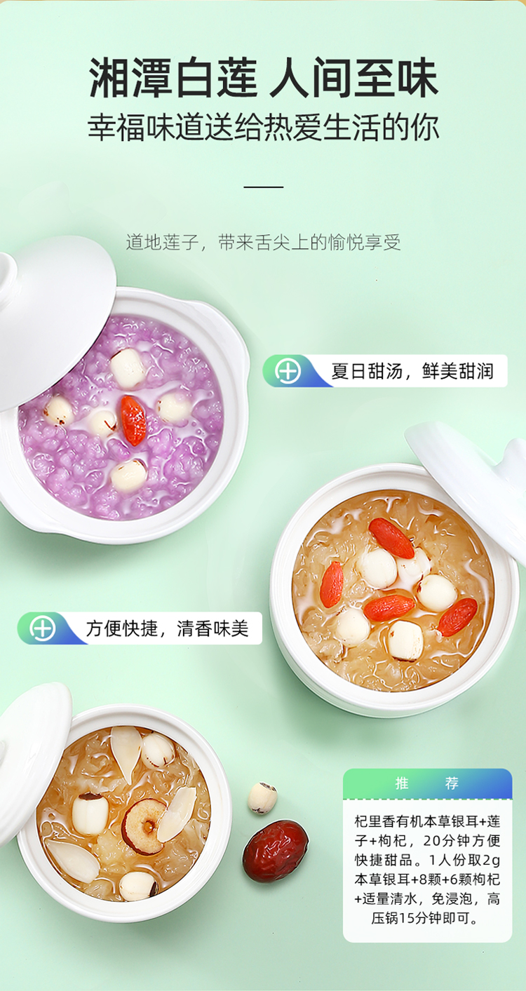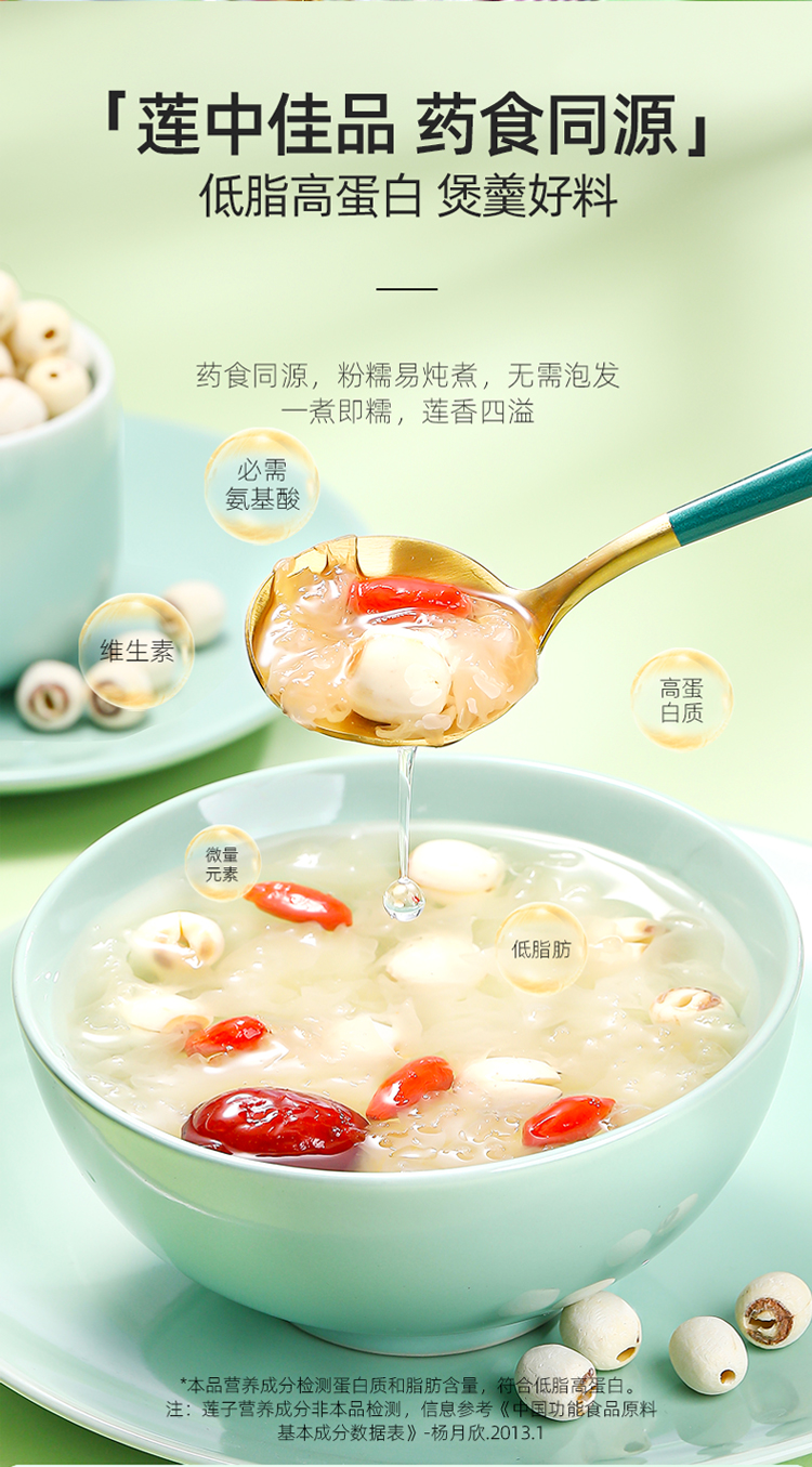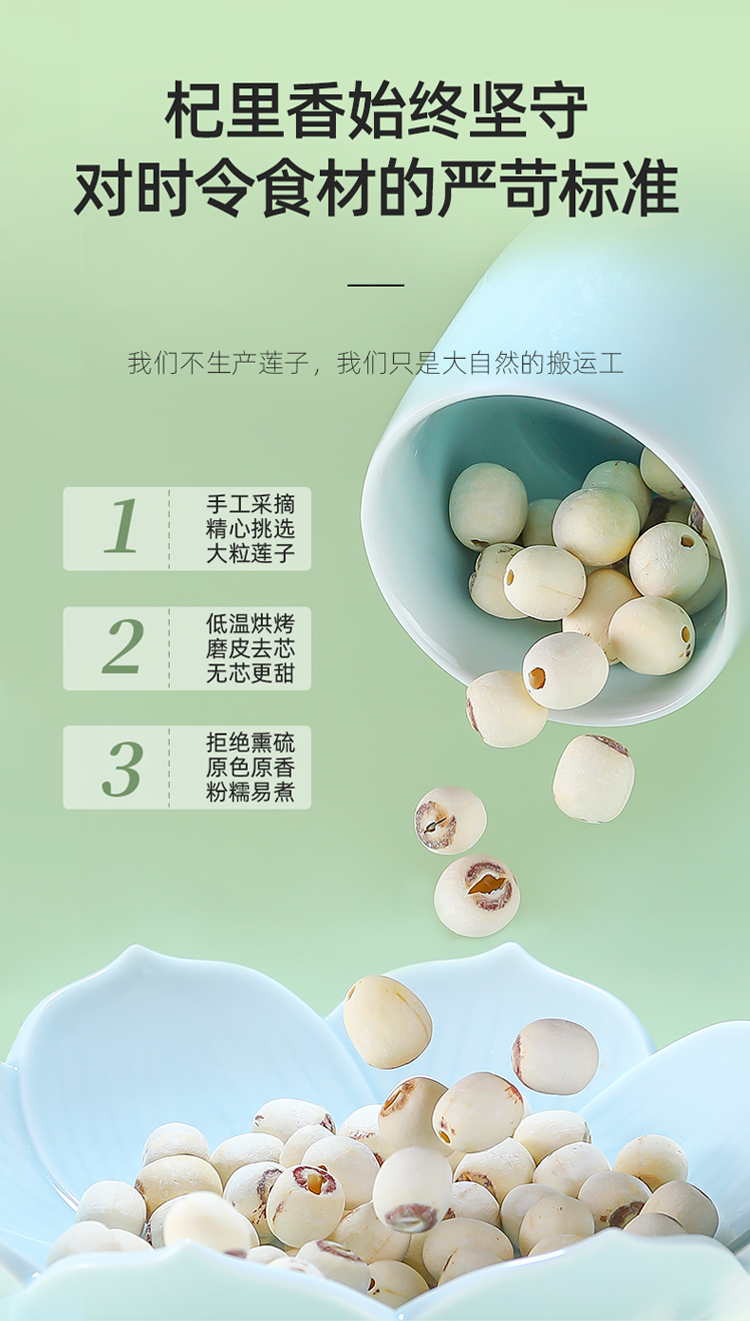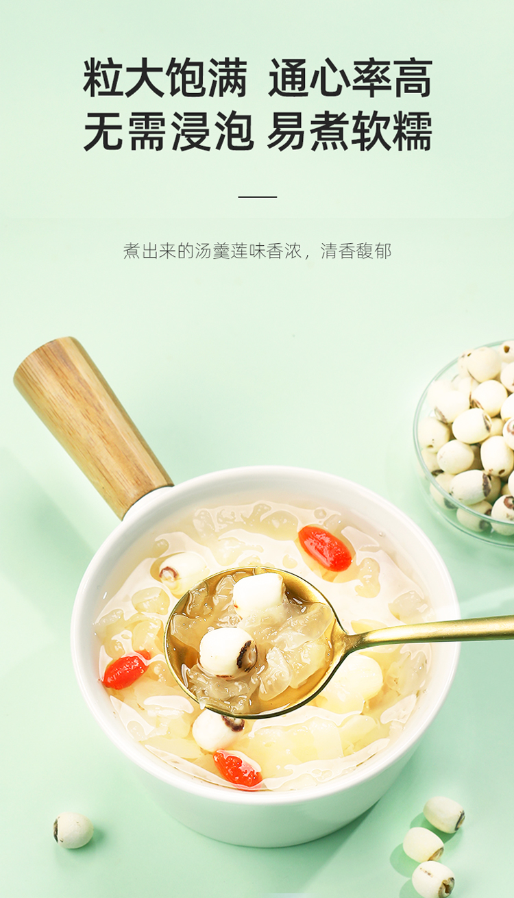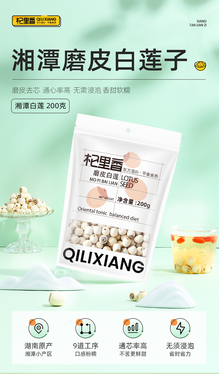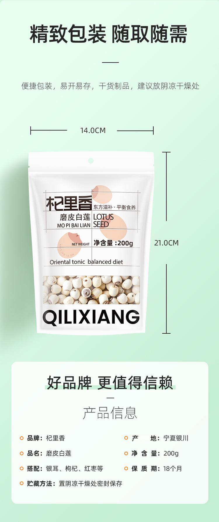 【杞里香磨皮白莲子干货去芯200g/袋】无芯湖南湘潭袋装搭百合银耳 稍煮即糯 色如凝脂 无芯三寸莲