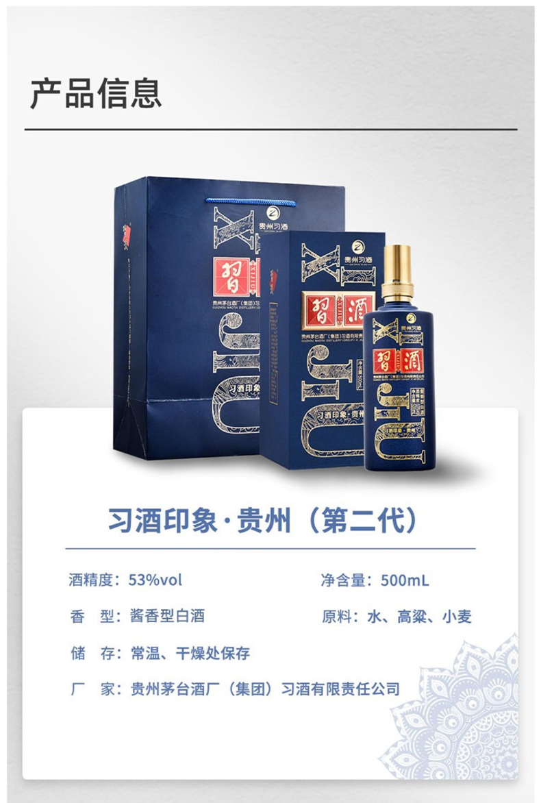 习酒印象贵州 53度酱香型白酒 整箱6瓶*500ml包邮