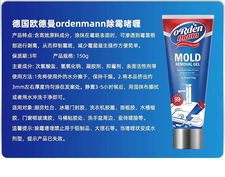 【中欧班列】【厨房除霉推荐】德国欧德曼ordenmann除霉啫喱剂150g/支NMNA