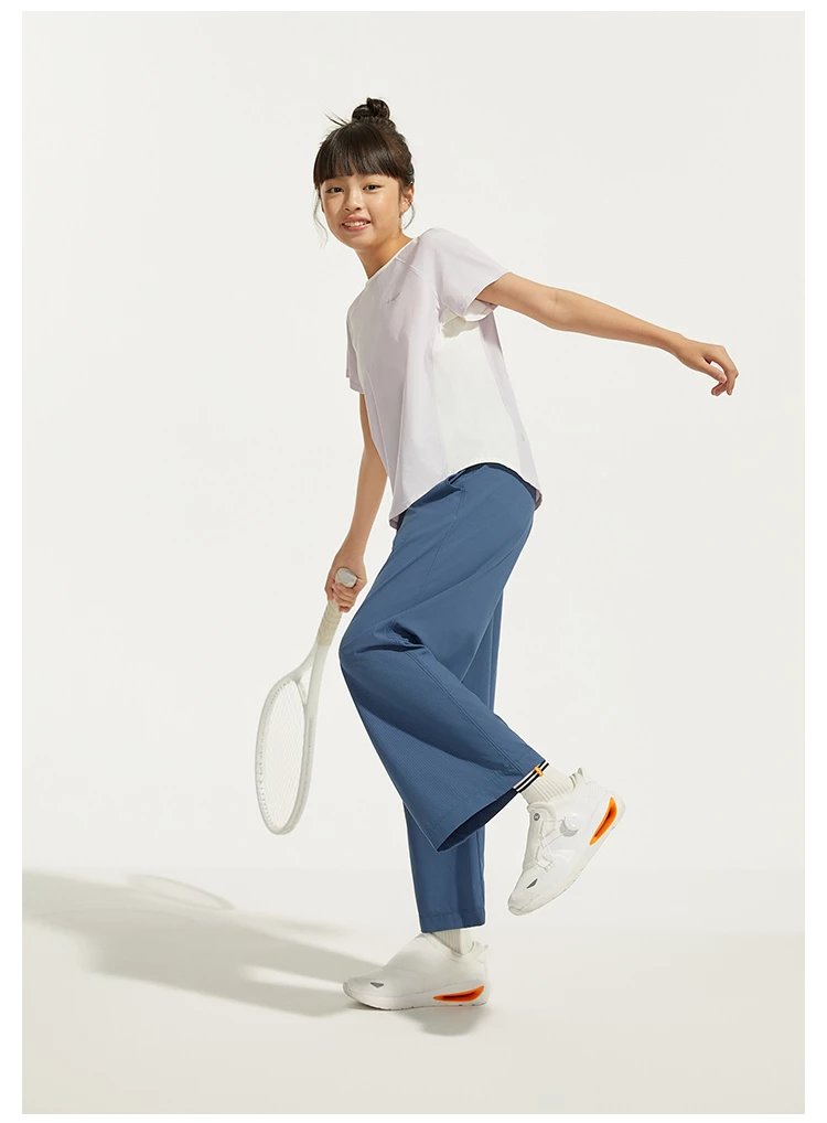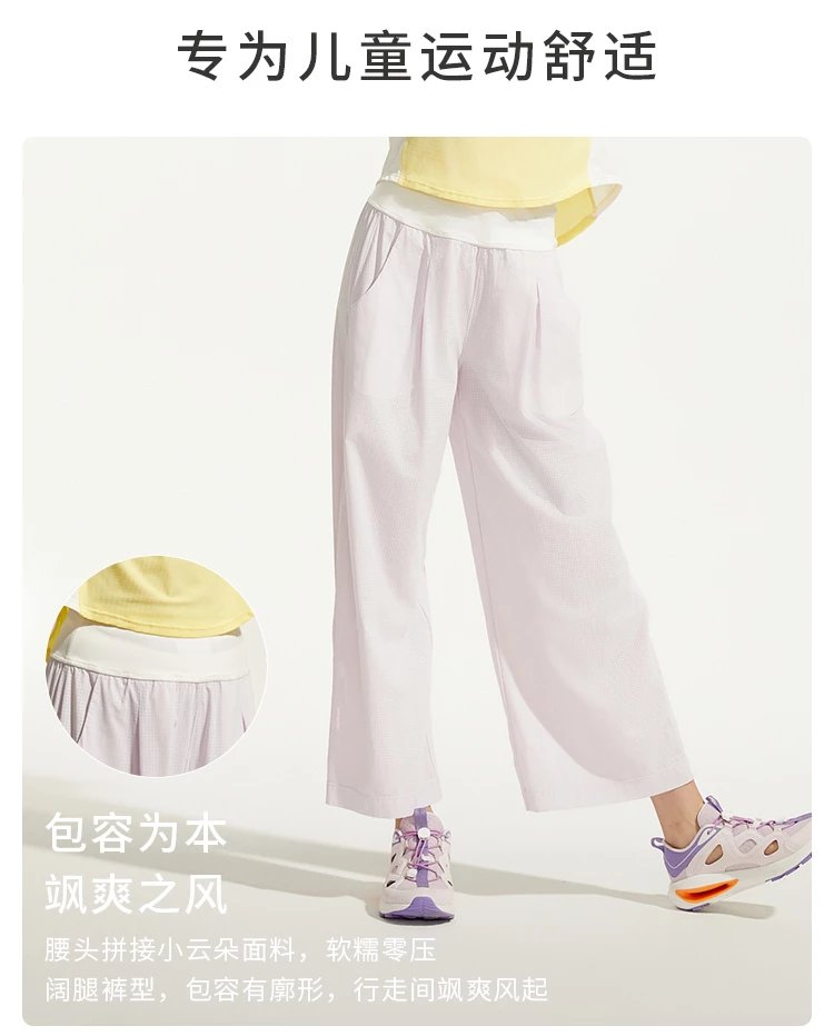 【24年夏新品爆款】moodytiger儿童裤子24年春季新款女童运动宽松透气阔腿裤42211303