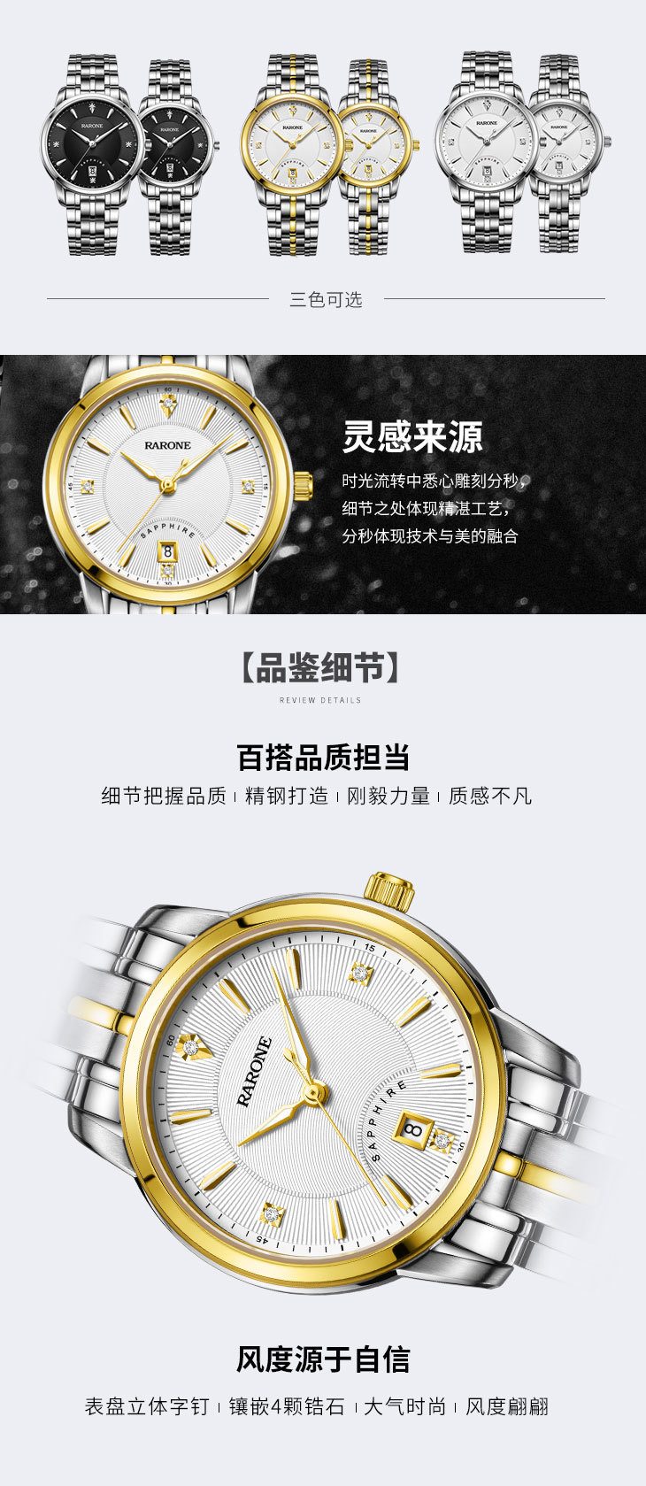 RARONE雷诺表高光系列石英对表832020