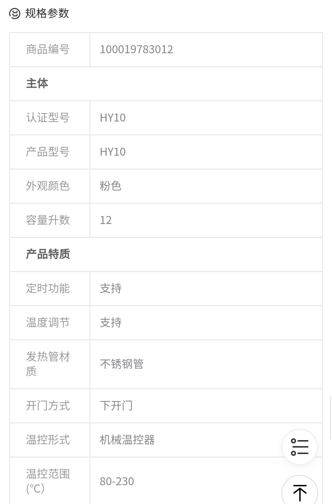 海氏 Hauswirt HY10电烤箱