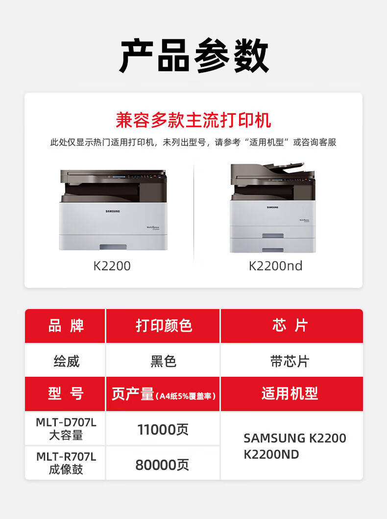 绘威MLT-D707L粉盒 大容量黑色墨粉盒适用三星SAMSUNG MLT-D707S K2200 2200ND 复印机硒鼓/墨粉/碳粉