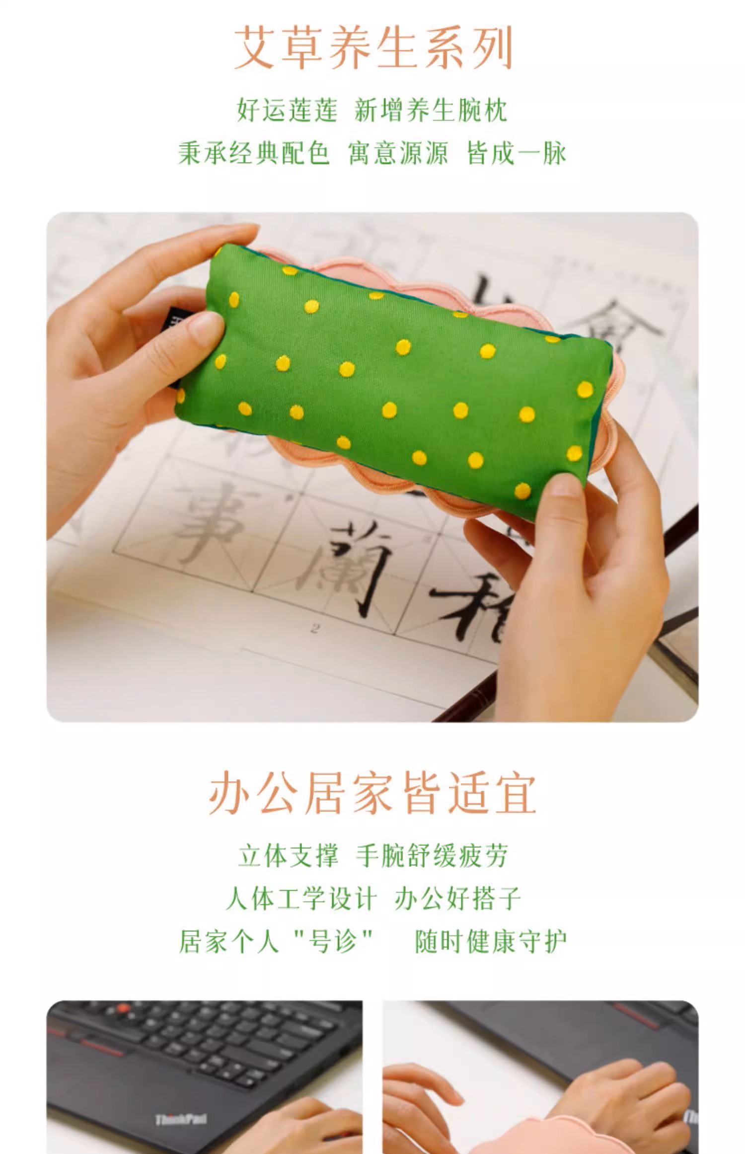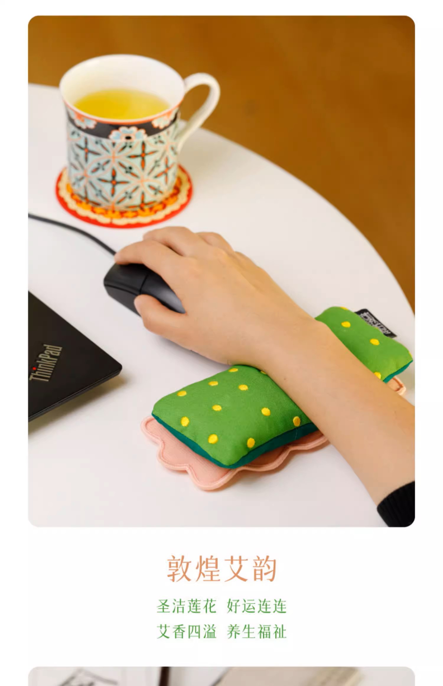 敦煌研究院 好运莲莲艾草养生腕枕 鼠标手腕垫手托桌面办公手腕垫
