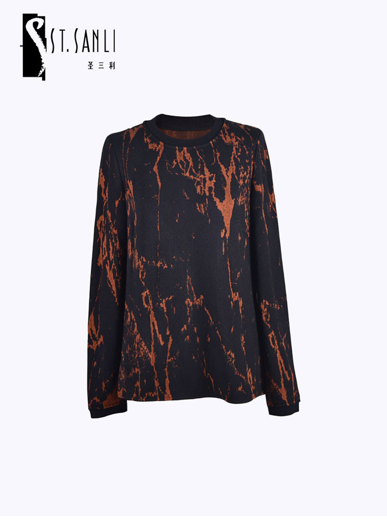 圣三利女装 简约休闲双色提花罗纹领针织套头衫SL2032243