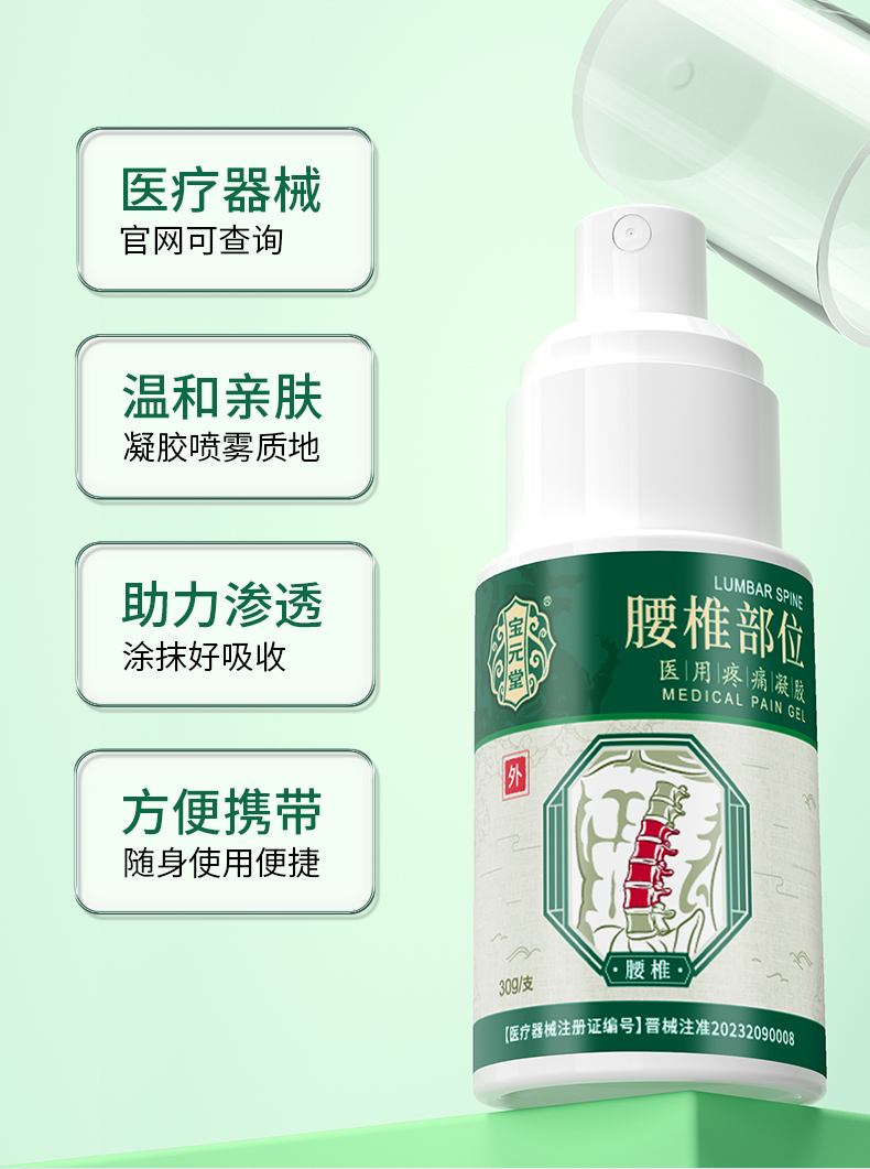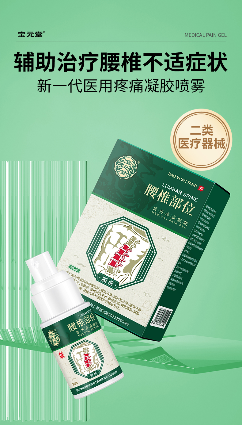 宝元堂腰椎部位型医用疼痛凝胶减轻腰椎劳损腰间盘突出疼痛喷剂