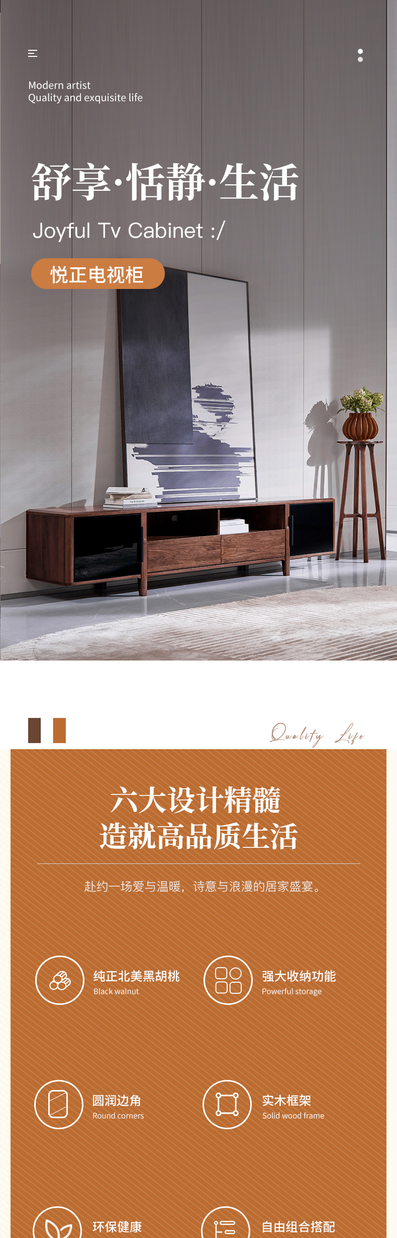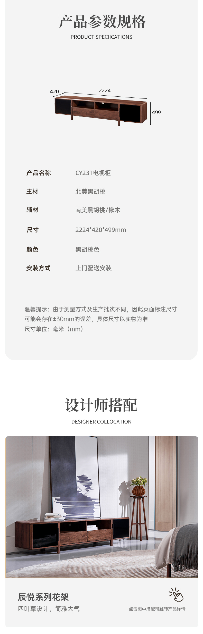 【现代风-CY231电视柜】现代风/客厅/北美黑胡桃/实木电视柜