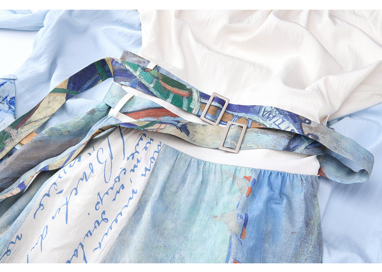 两三事 星隙独舞 2025夏季新款复古印花布拼接假两件吊带裙连衣裙