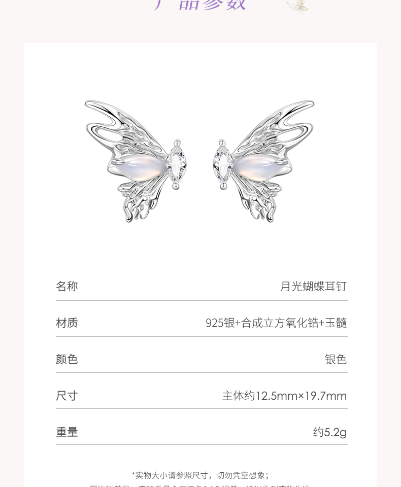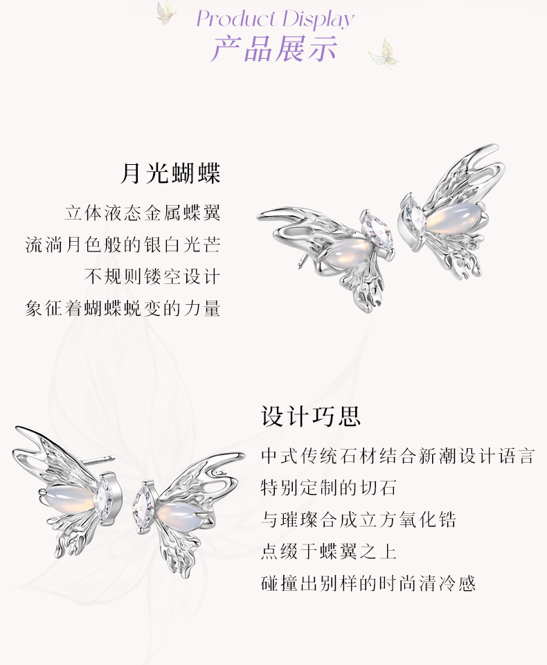 【月光蝴蝶耳钉】Fanci范琦银饰 宫主×王者荣耀合作款 时尚轻奢小众