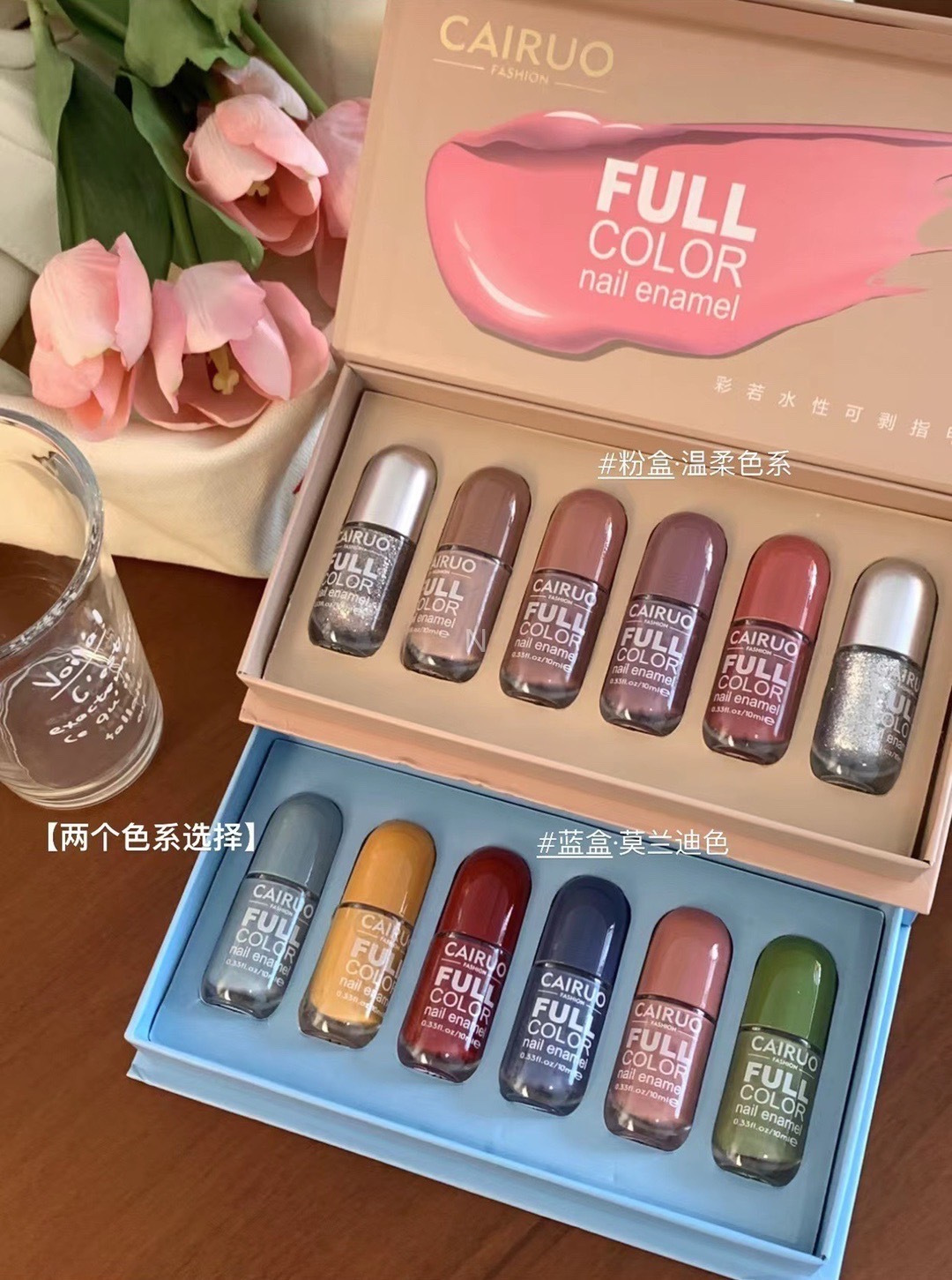 【美甲好物丨吾家彩若可撕拉指甲油1盒装】 一盒6色,牢固度持久饱和度高,质地润滑易涂,光泽度强,毛刷均匀不分叉,可以一整片撕下来,两个色系可选,随心搭配都好看,一周指甲不重样的美丽~