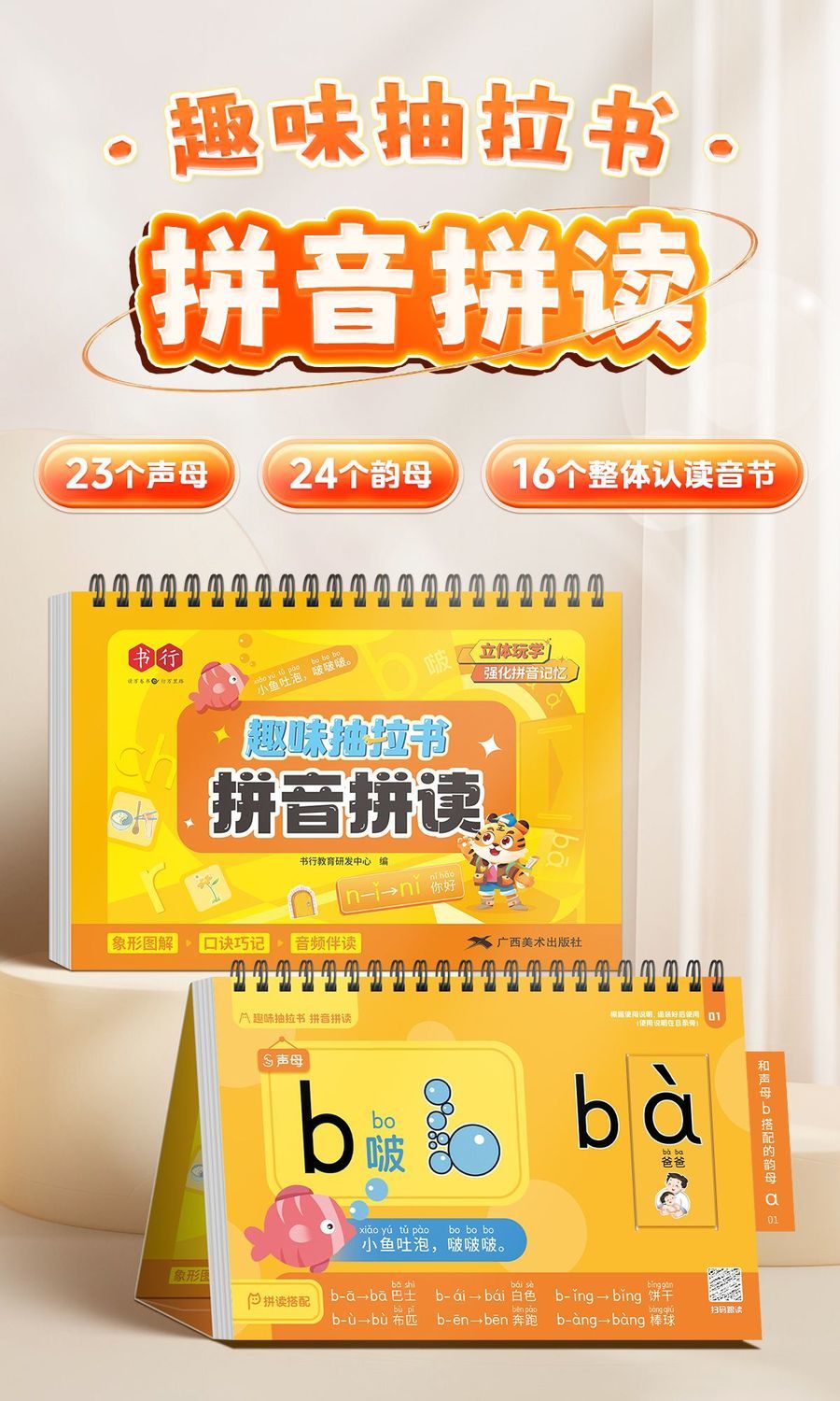 (会员)好玩有趣启蒙益智【学拼音认字】趣味抽拉书翻翻书儿童绘本益智动手动脑游戏图画书认知早教