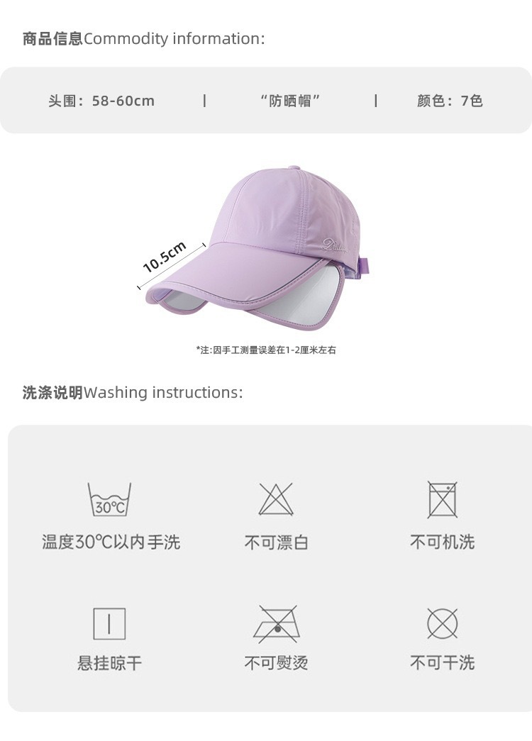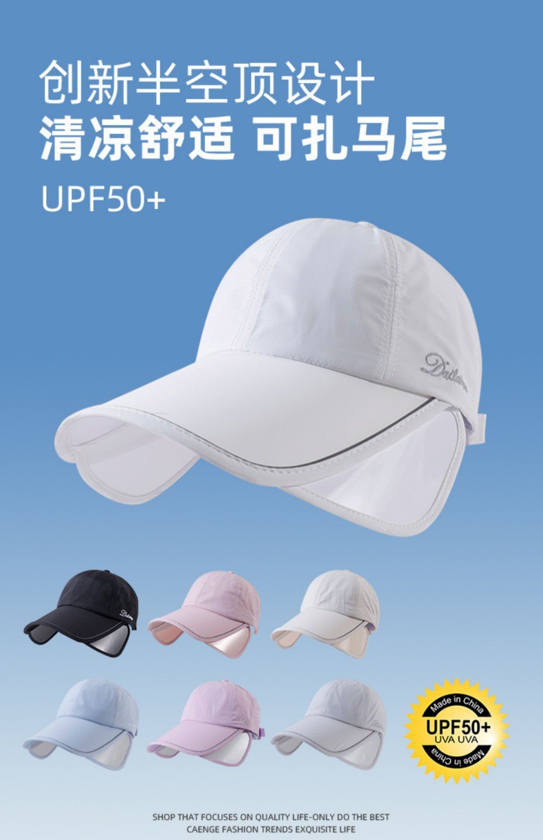 【创新款爆品!🔥】2025新款男女同款防晒帽,UPF50+全脸防晒,10.5CM加大帽檐,清凉舒适还能扎马尾!让你户外运动也能美美哒✨加大帽檐户外运动鸭舌帽 遮太阳帽防紫外线