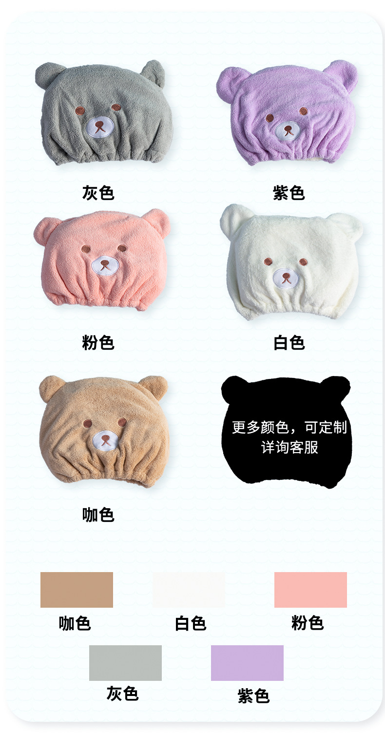 「熊熊浴帽!数色可选」珊瑚绒小熊干发帽女吸水毛巾可爱浴帽儿童干发帽子擦头包头巾居家布艺