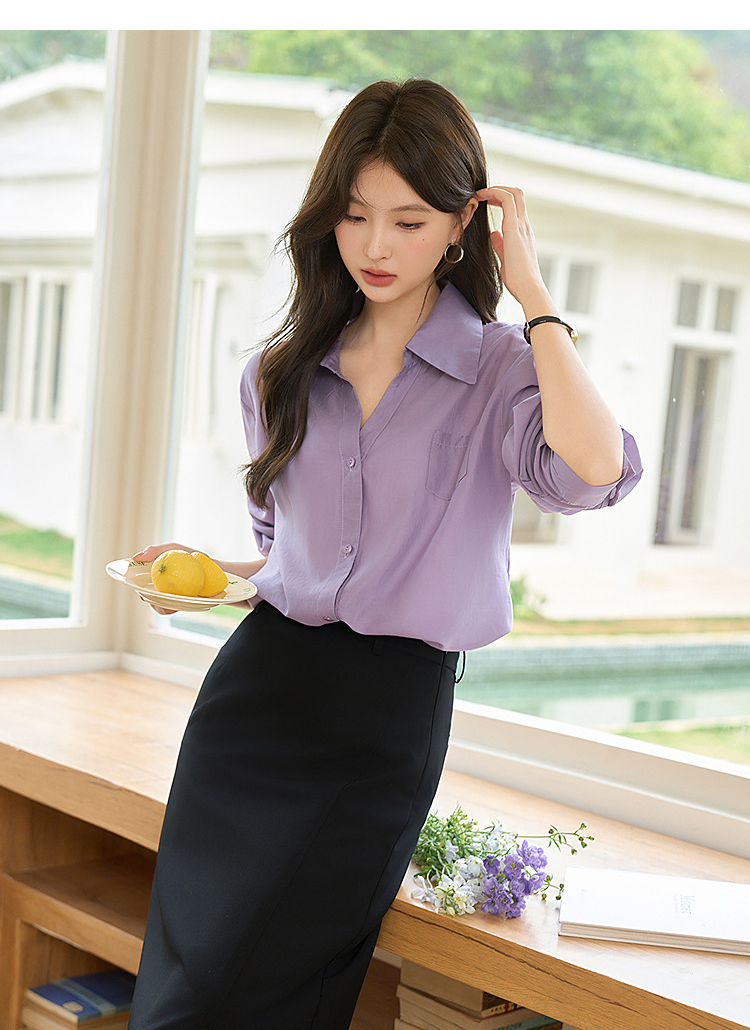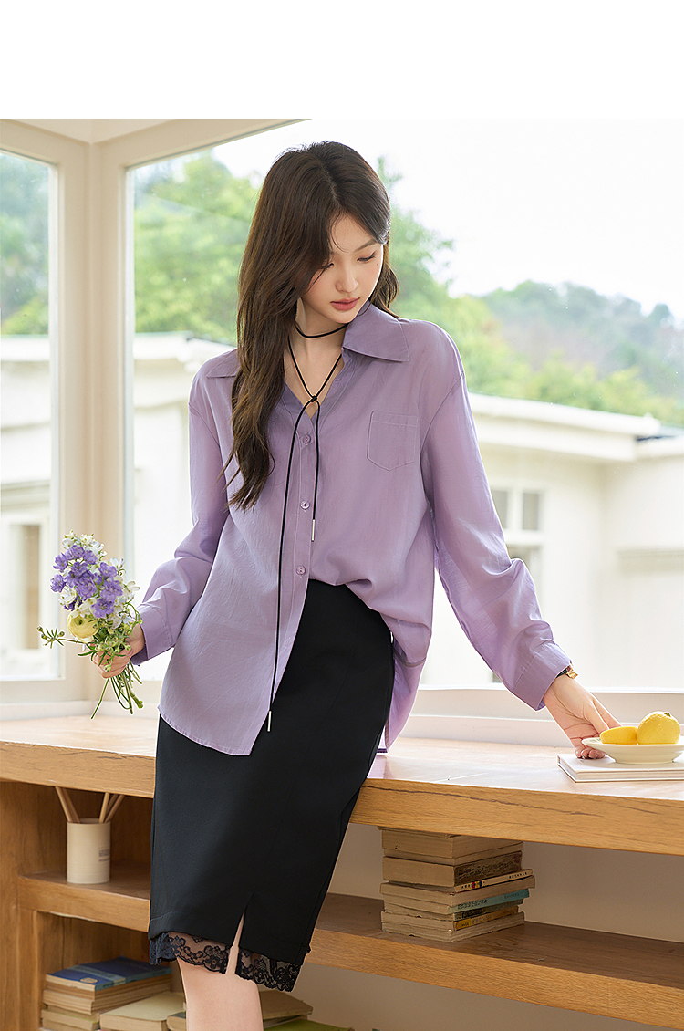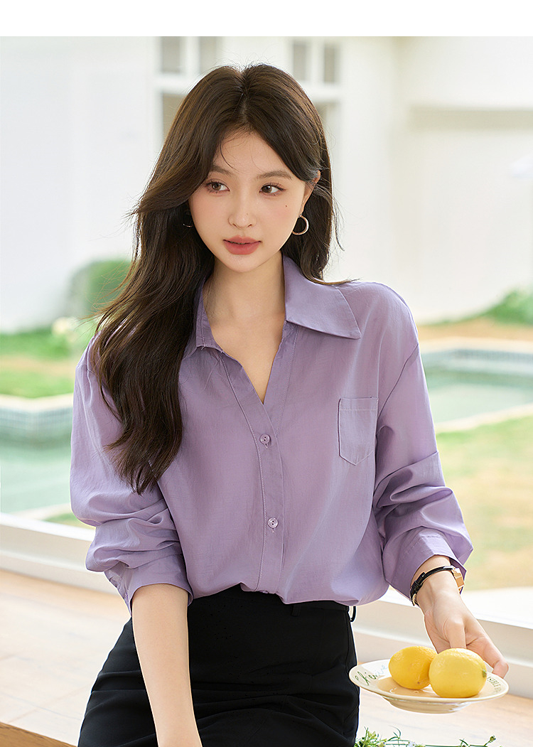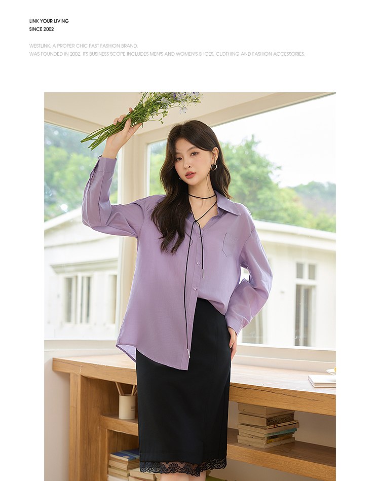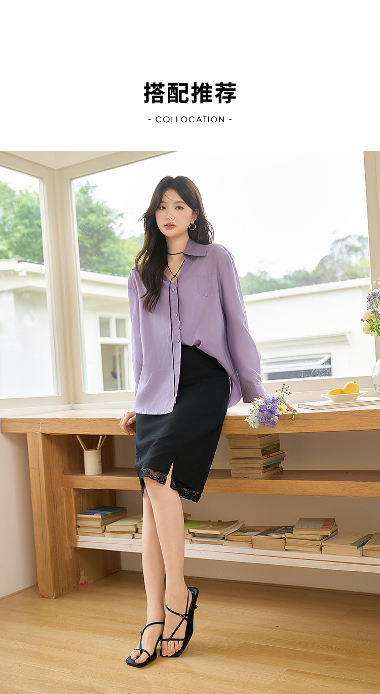 西遇宽松轻职场衬衫女新款法式紫色上衣慵懒风翻领外套D0050461