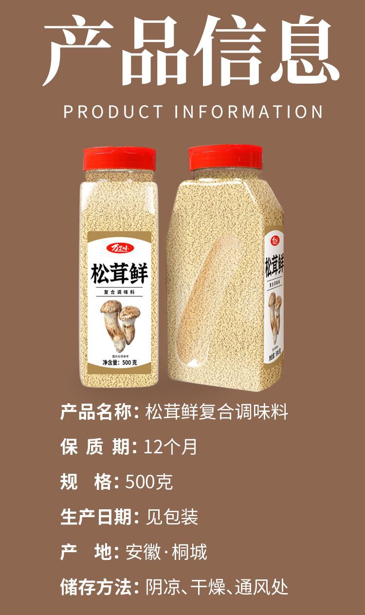 【松茸鲜调味料】甄选品质原料制作,松茸提鲜,代替鸡精和盐调味 500g/瓶