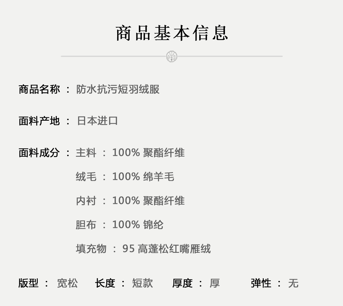 牧衣游原创 进口防水抗污95高蓬松红嘴雁绒短羽绒服保暖蓬松 纫冬