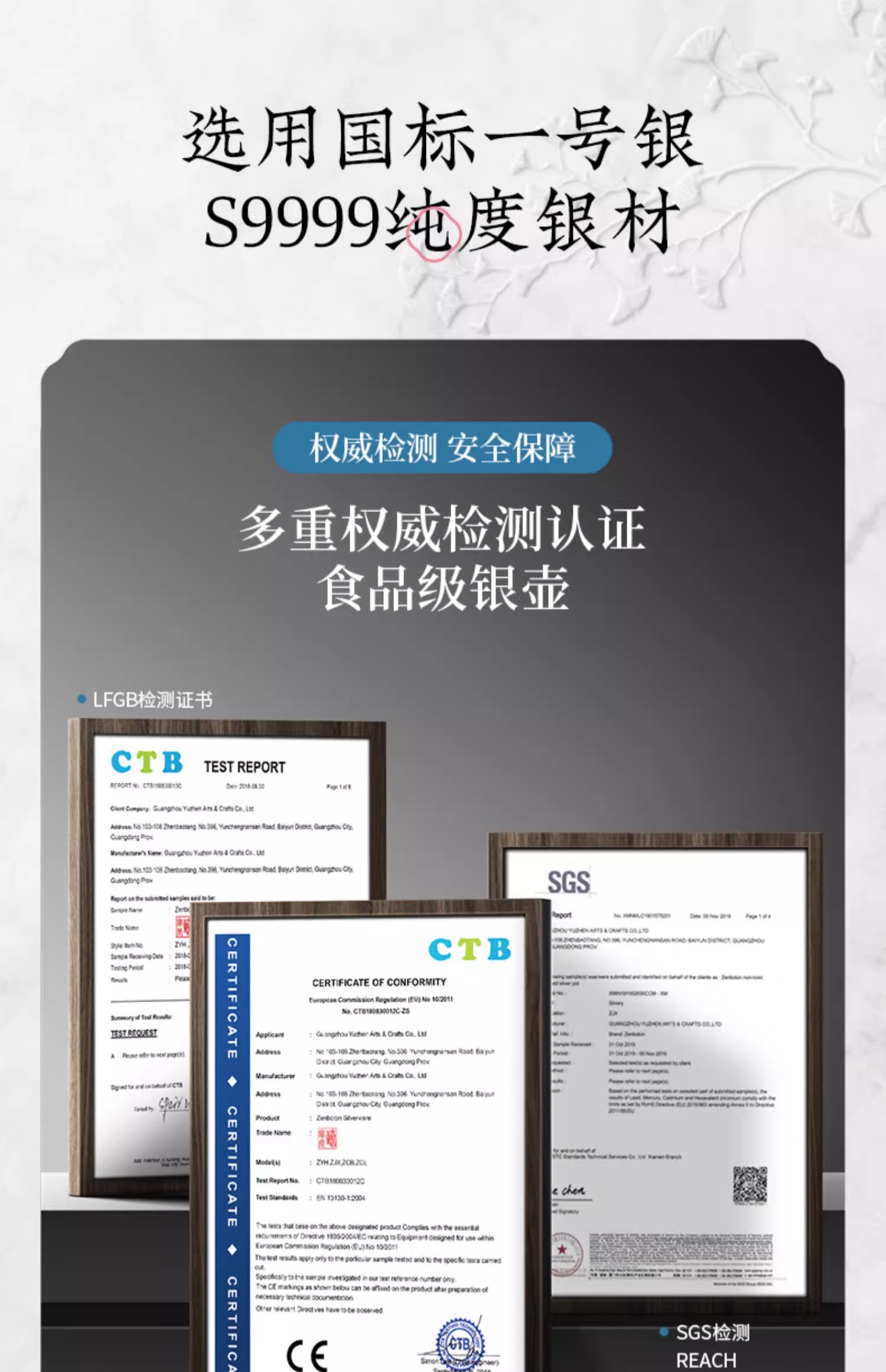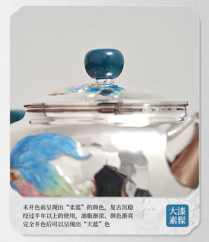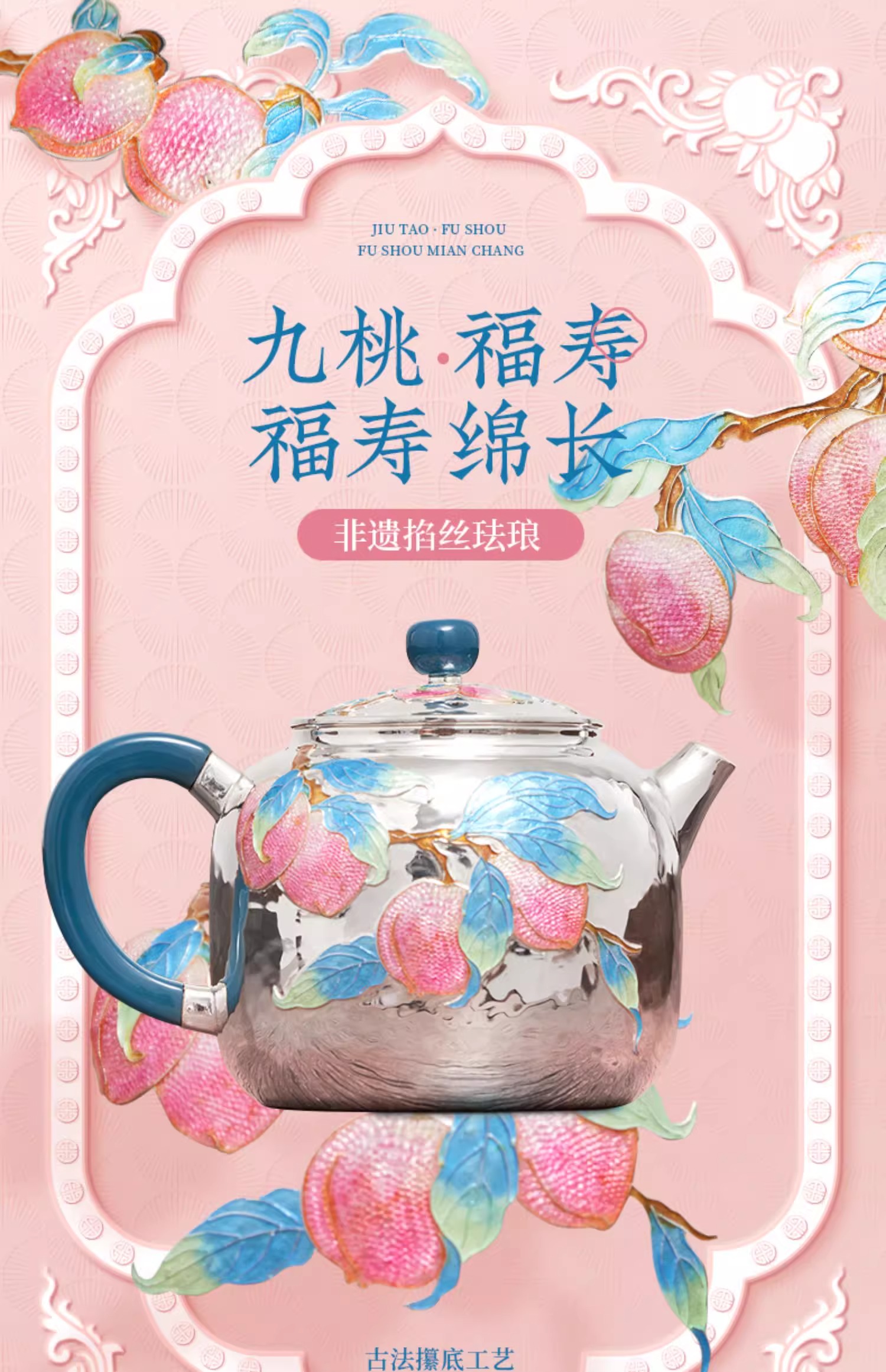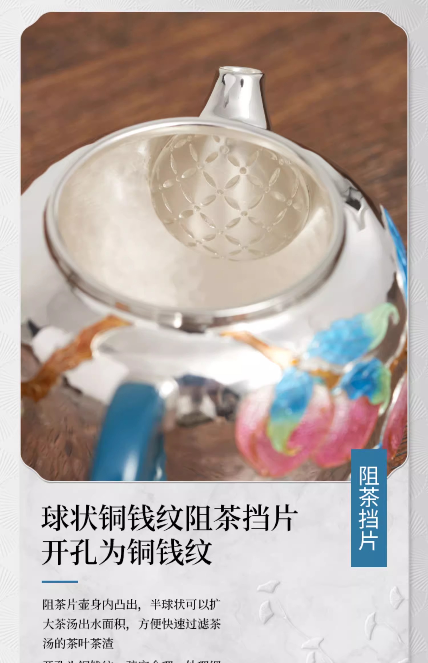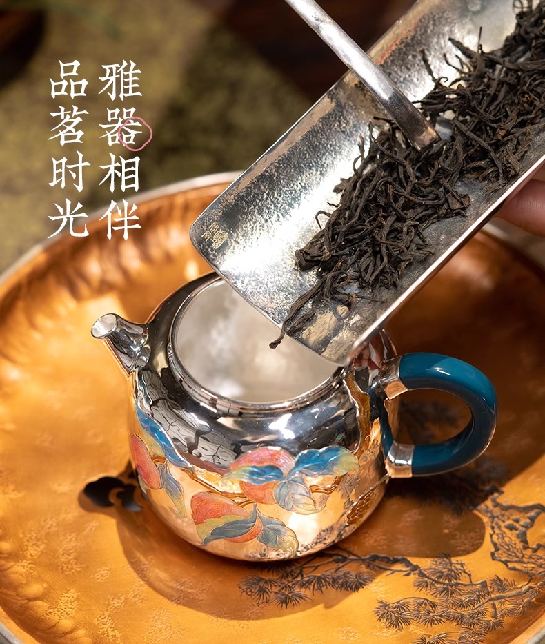 臻宝堂银壶999纯银泡茶壶纯手工寿桃粉色珐琅壶足银制作高端茶具珐琅德钟福寿壶150ml