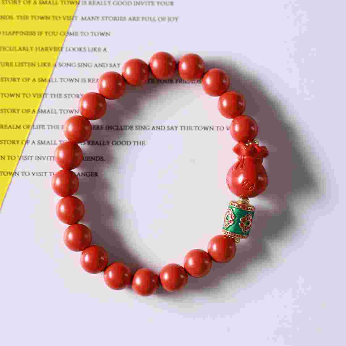 | 配件 | 铜飞碟,沙金绿色如意小孔桶珠,朱砂小福袋(福圆) |