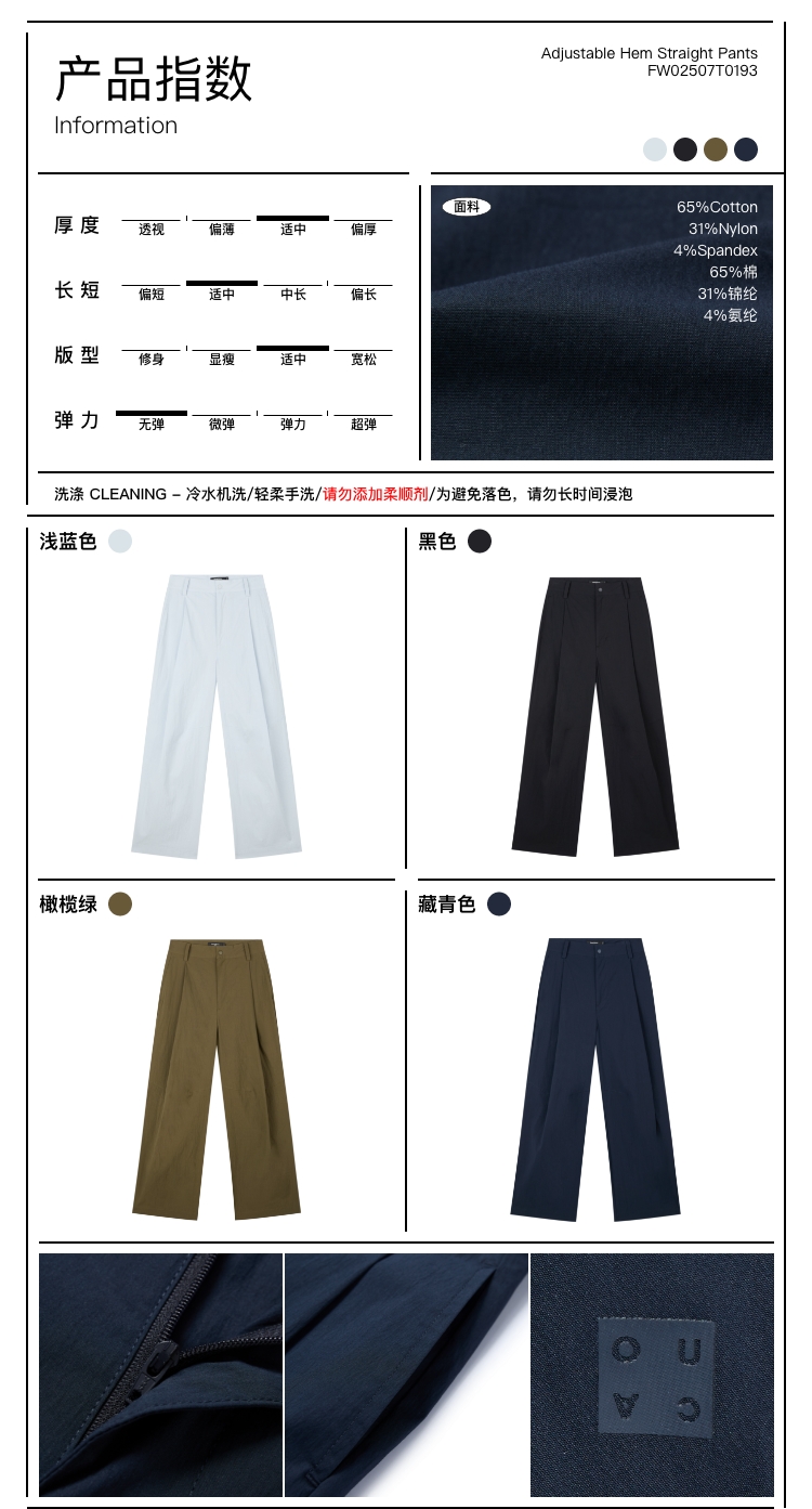 oneup调节裤脚直筒裤
