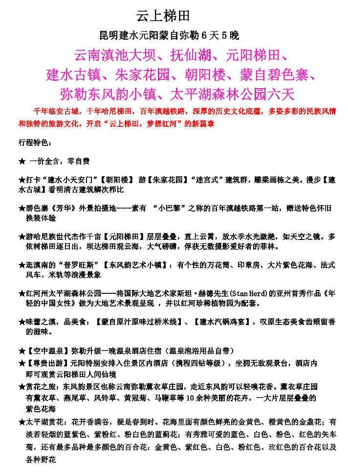 云南芳华元阳云上梯田昆明建水蒙自弥勒6天5晚