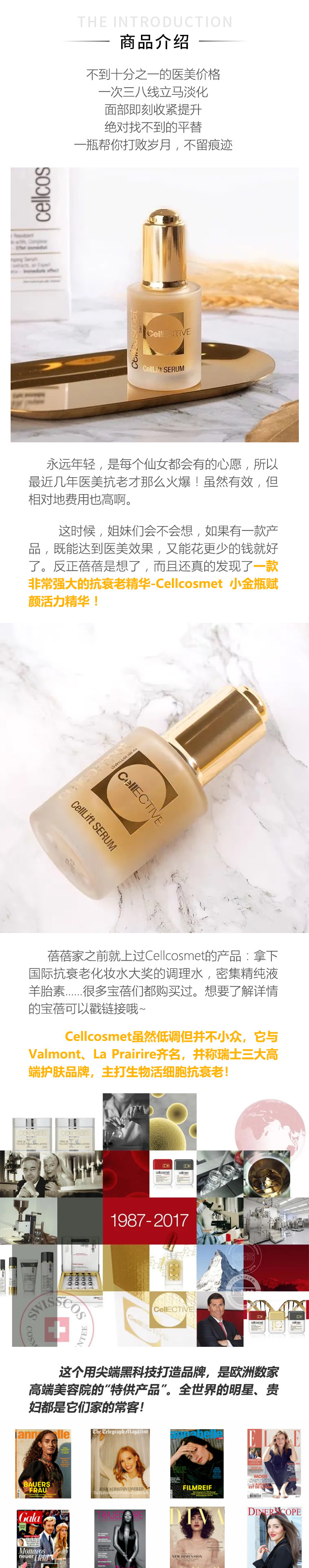 【贵妇专场】瑞士瑞妍Cellcosmet 小金瓶赋颜活力精华(新款无塑封)~(一周内发货)