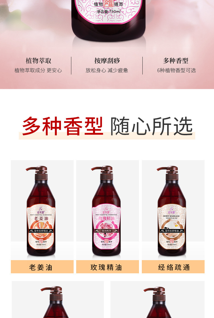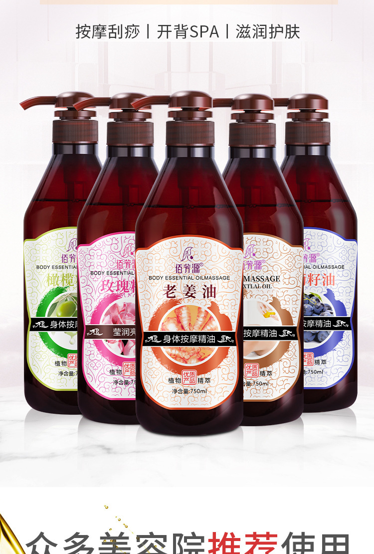 老姜精油身体按摩油橄榄油润肤油刮痧开背玫瑰葡萄籽美容院用批发 商品图4