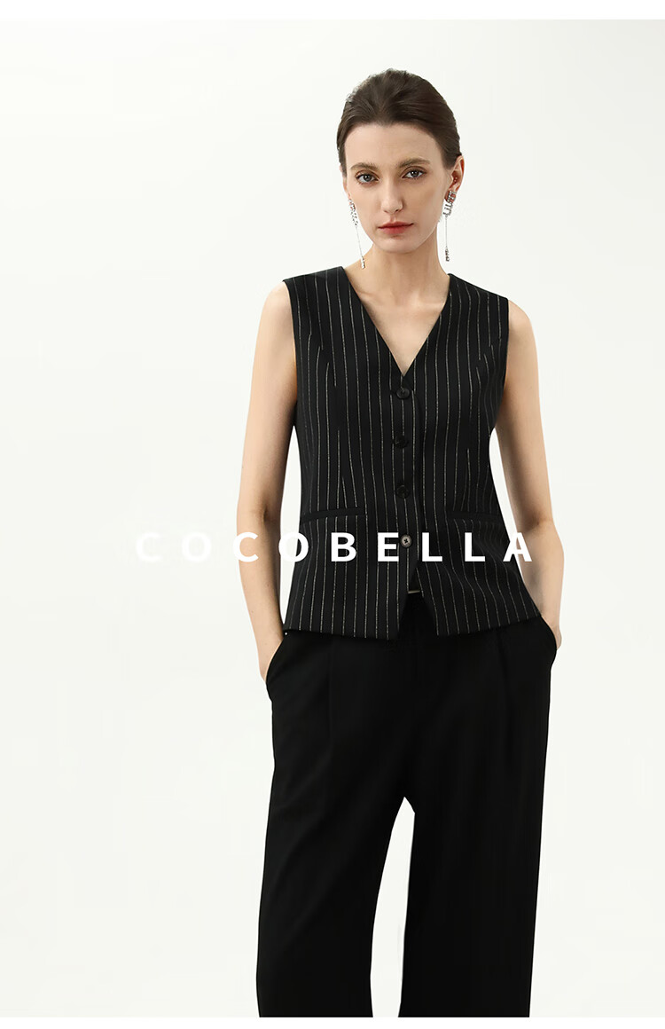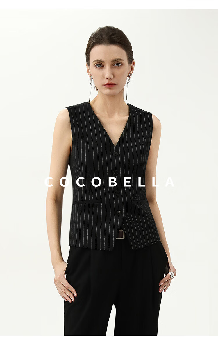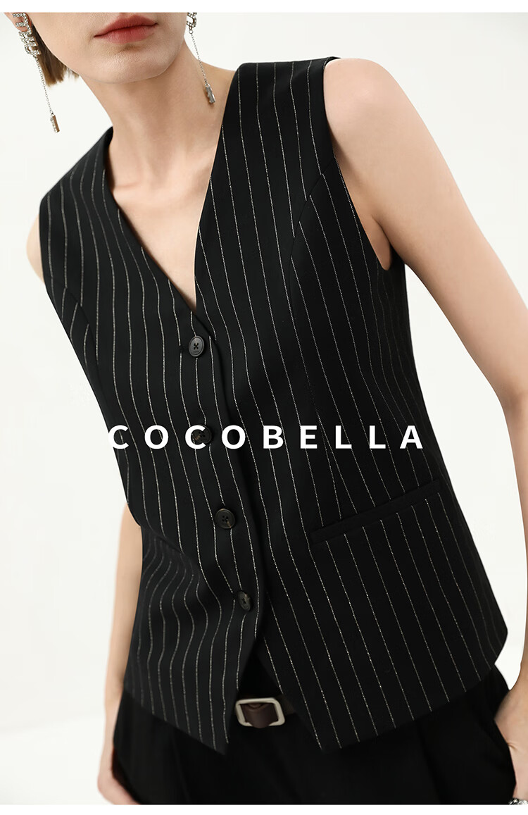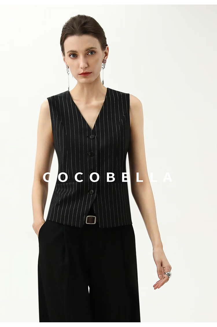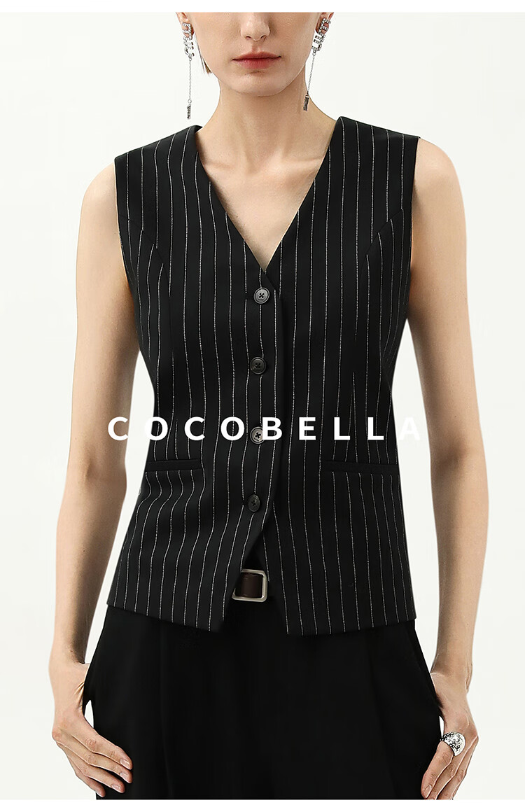 COCOBELLA商务休闲条纹V领马甲25春通勤叠穿西装马夹WS3012