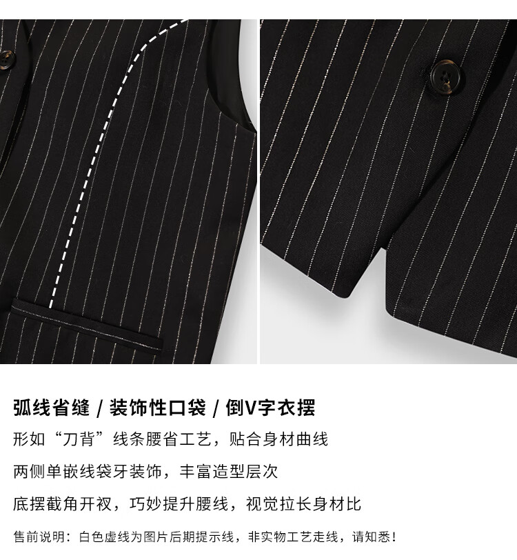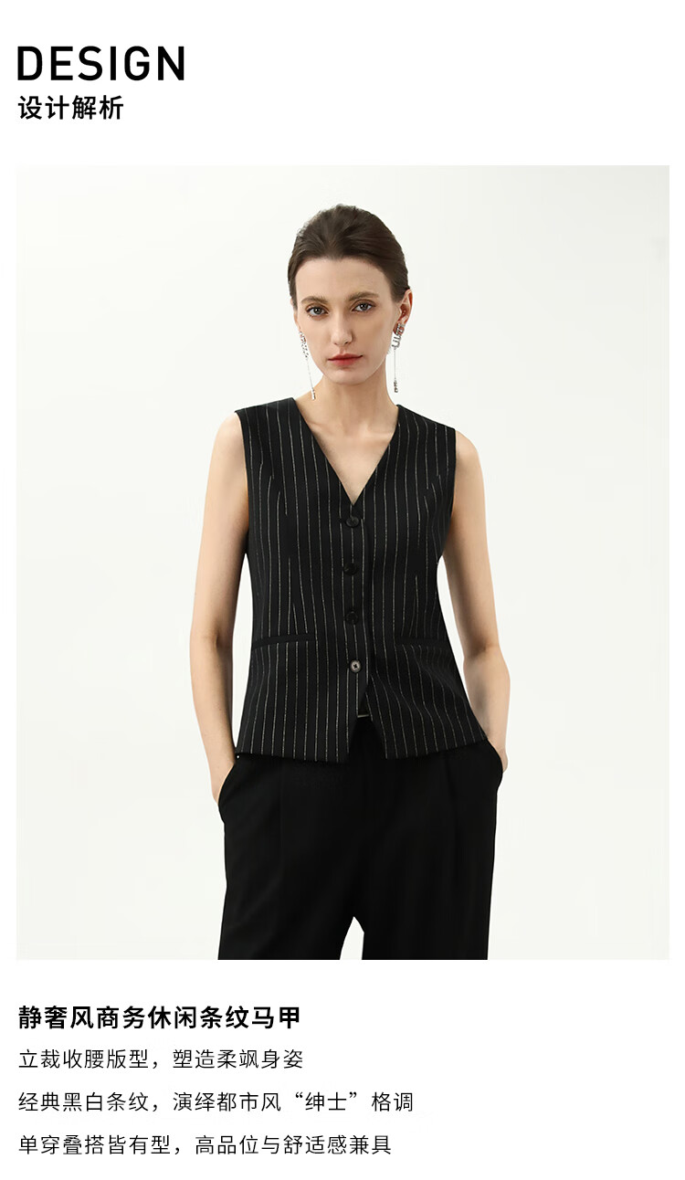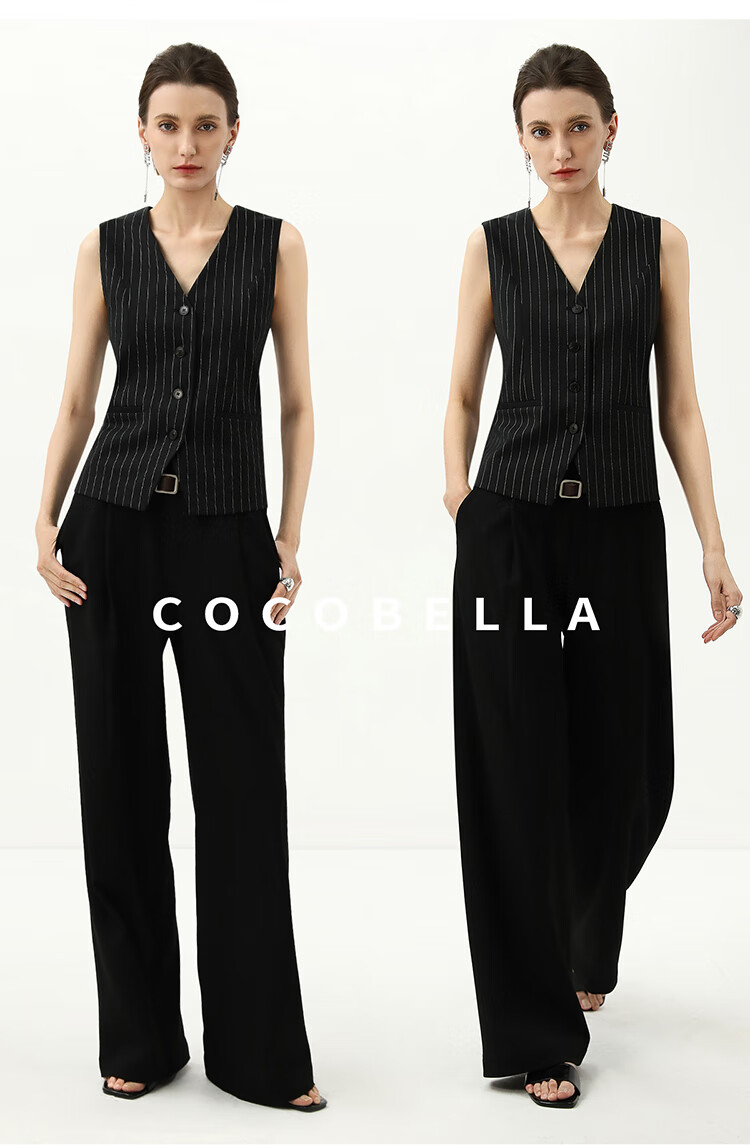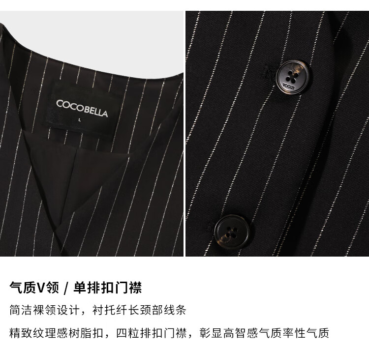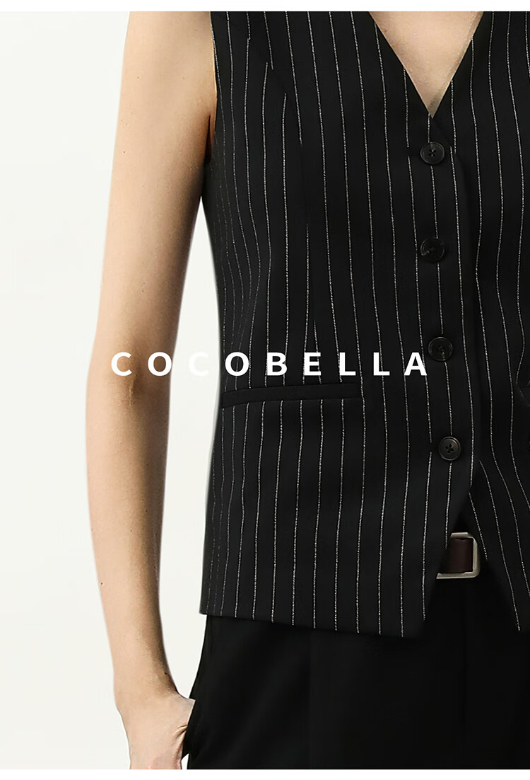 COCOBELLA商务休闲条纹V领马甲25春通勤叠穿西装马夹WS3012