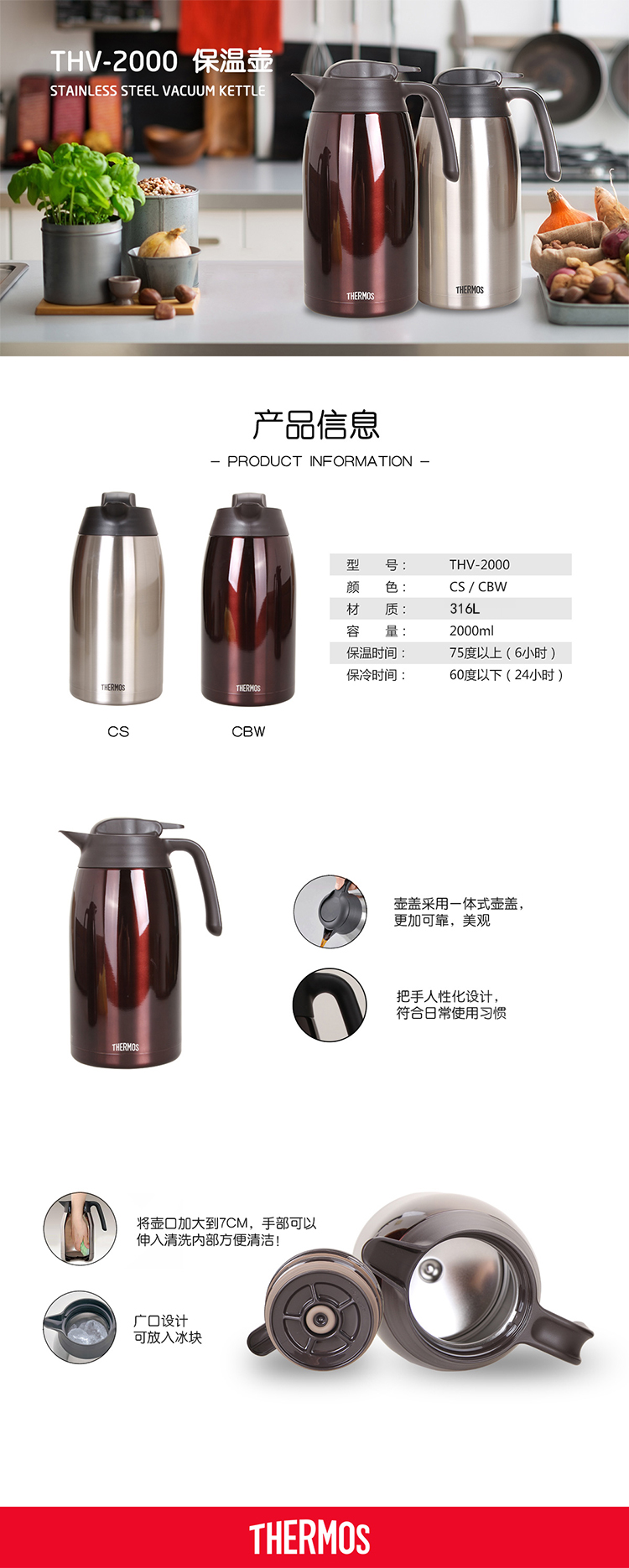 【4月】膳魔师保温壶THV-2000S【7F童床】[广百北京路店]