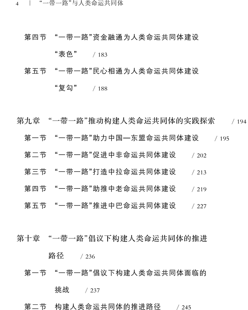 “一带一路”倡议为全球发展合作提供了创新思路,为破解全球发展难题贡献了中国智慧和中国方案,体现了中国将自身发展同世界发展相统一的全球视野、世界胸怀和大国担当,堪称构建人类命运共同体的重要平台。“一带一路”构建人类命运共同体的根本逻辑和基本路径,就是在“一带一路”建设国际合作框架内,各方秉持共商共建共享原则,携手应对世界经济面临的挑战,开创发展新机遇,谋求发展新动力,拓展发展新空间,实现优势互补、互利共赢,不断朝着人类命运共同体方向迈进。本书对“一带一路”与人类命运共同体做了理论上和现实上的阐述。