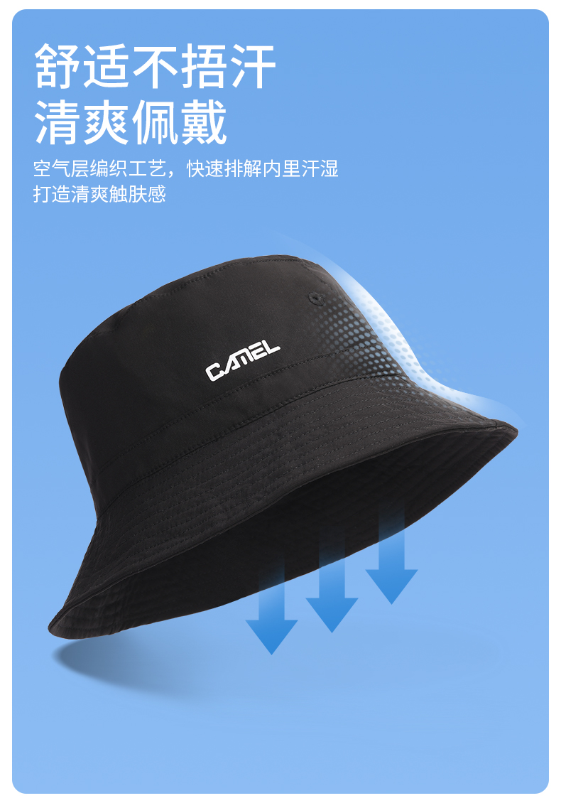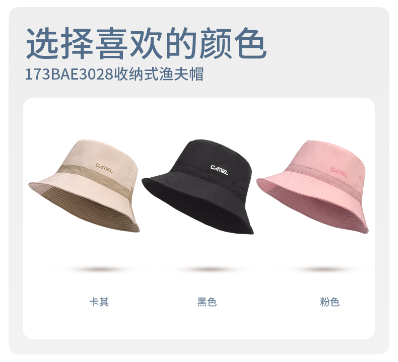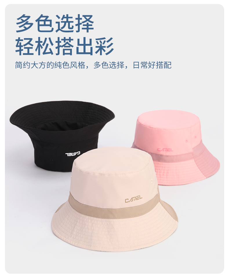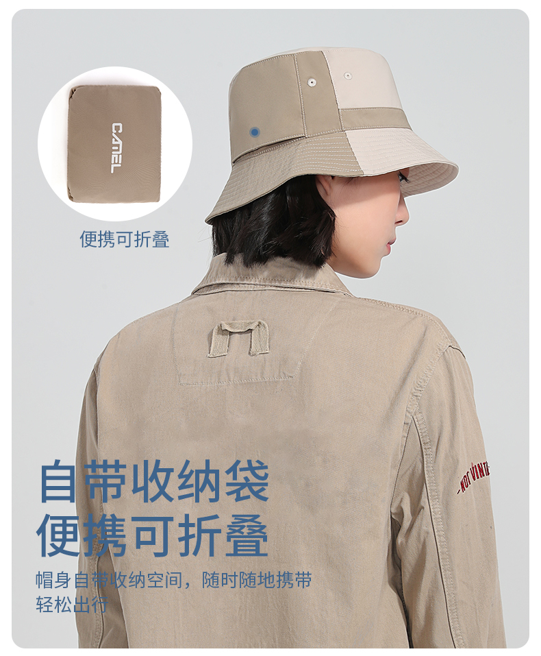 骆驼云感防晒帽女可收纳大帽檐遮阳帽子夏户外运动防紫外线渔夫帽 173BAE3028
